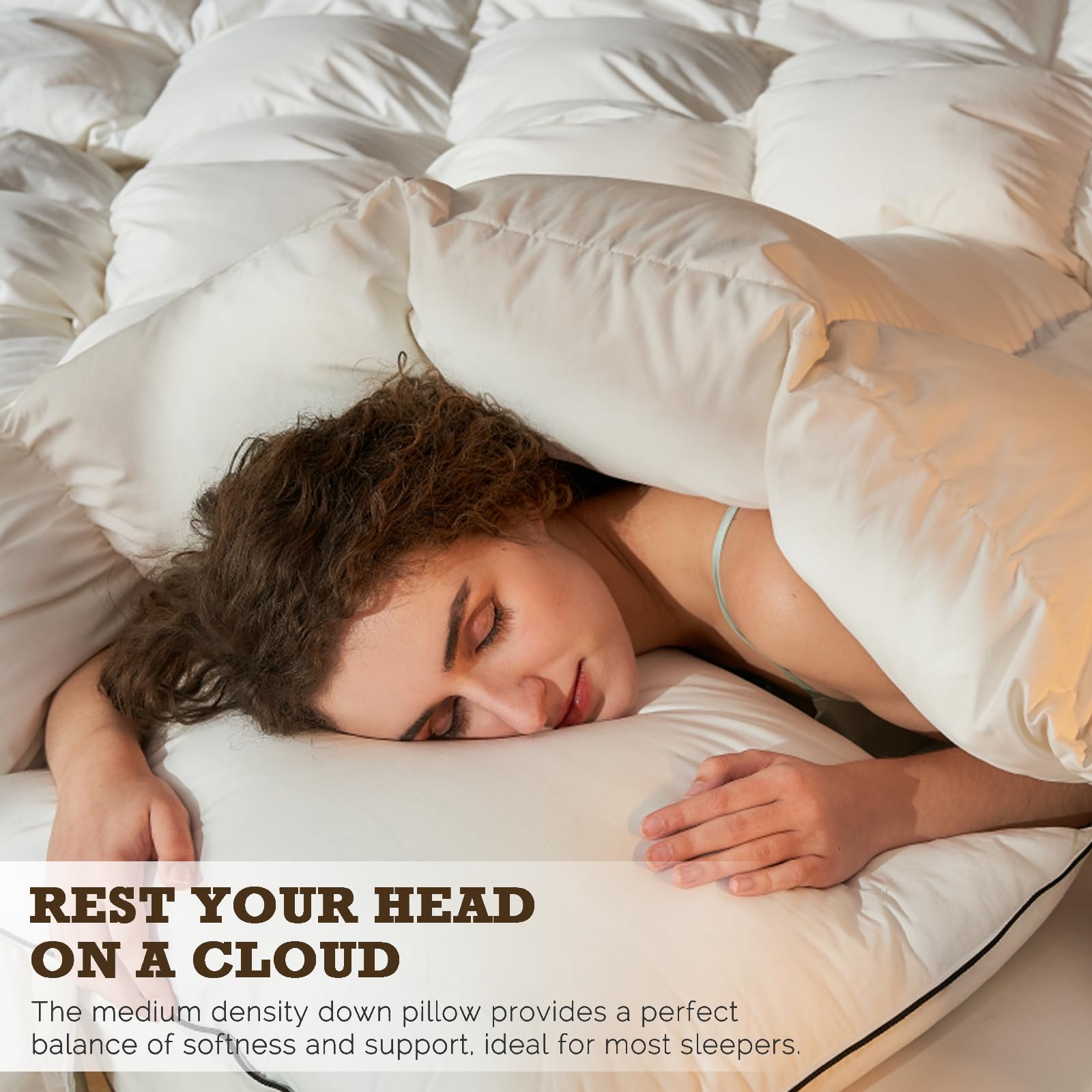 Feather Down Pillow Set of 2, Standard Size Medium Bed Pillow Inserts, Luxurious