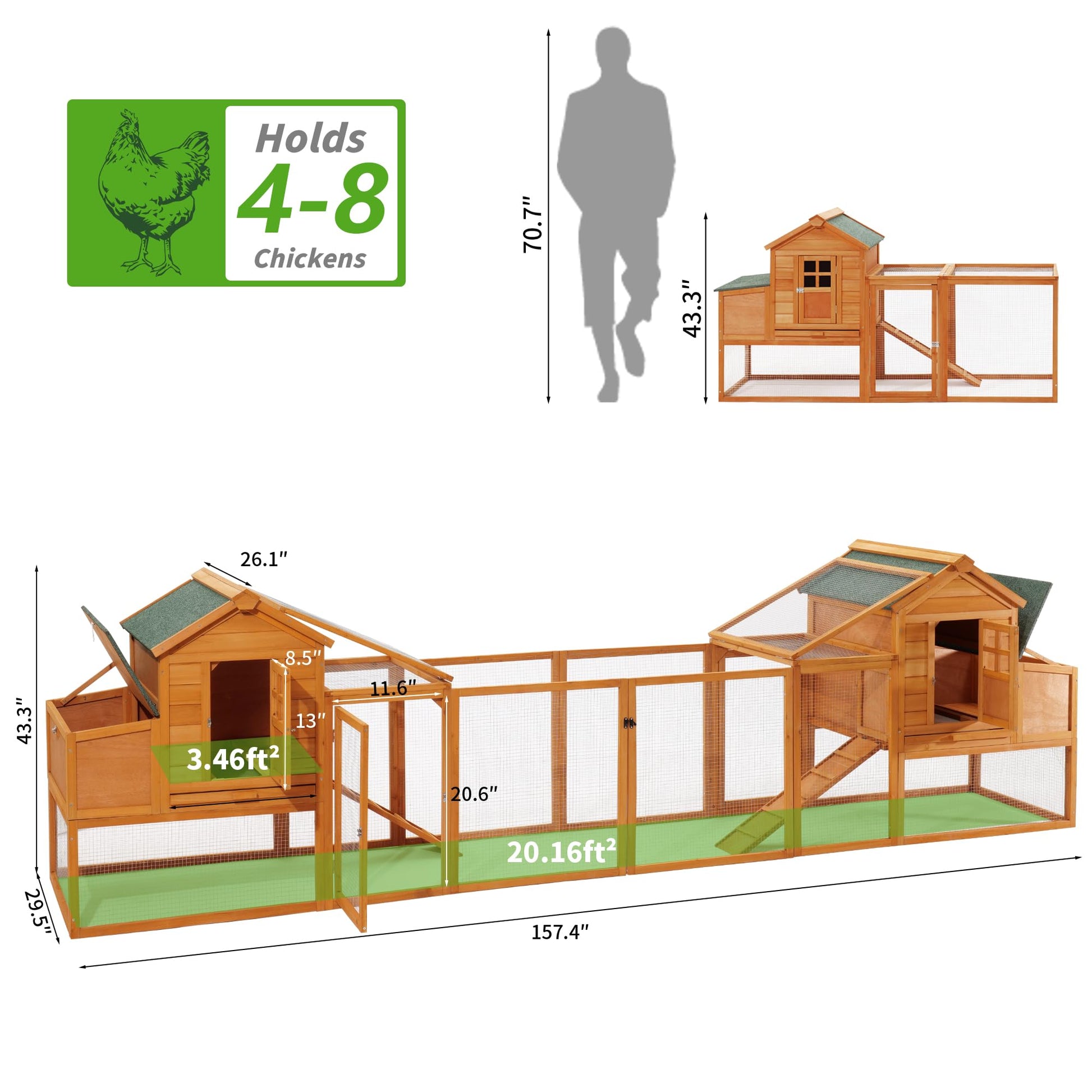 Breltam 157" Large Chicken Coop Hen House Wooden Chicken House Poultry Cage