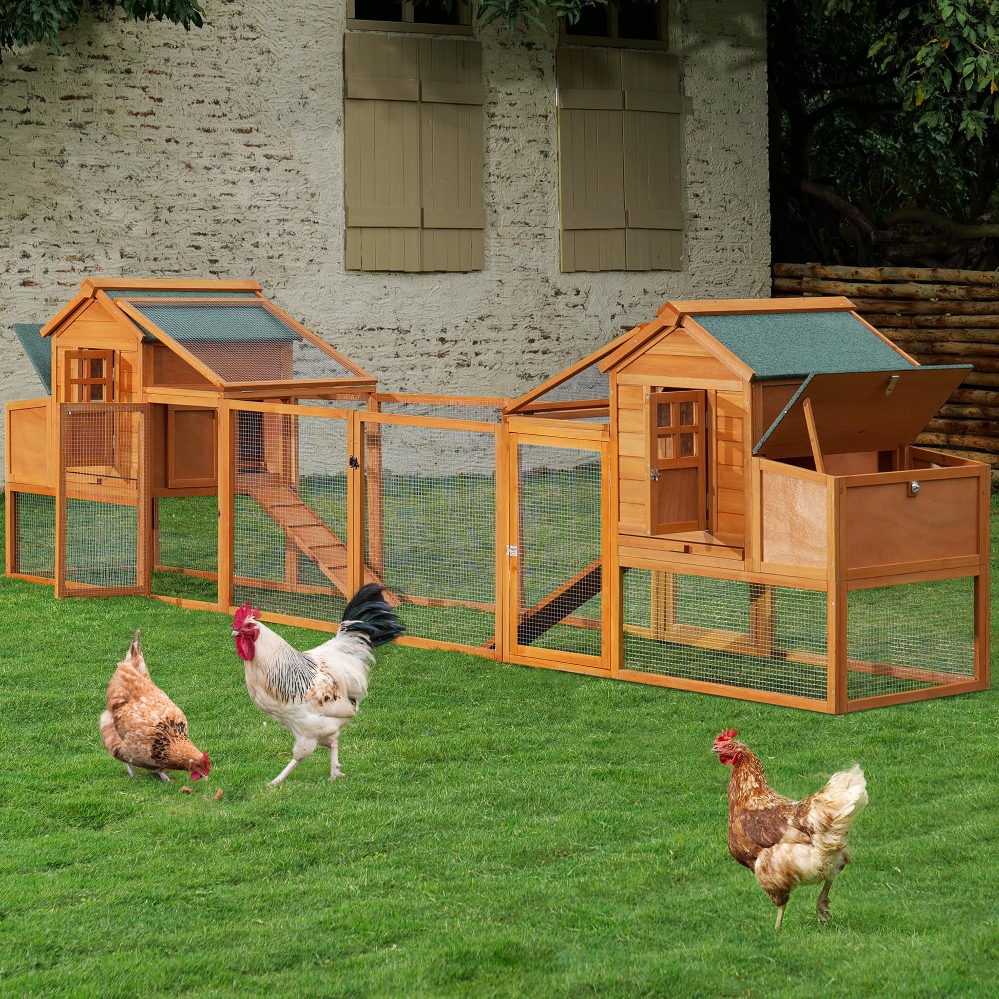 - The large chicken coop with run provides generous space for chickens to roam and perch. With multiple levels, nesting boxes, and roosting bars, your chickens will have plenty of room to stretch their wings and engage in natural behaviors