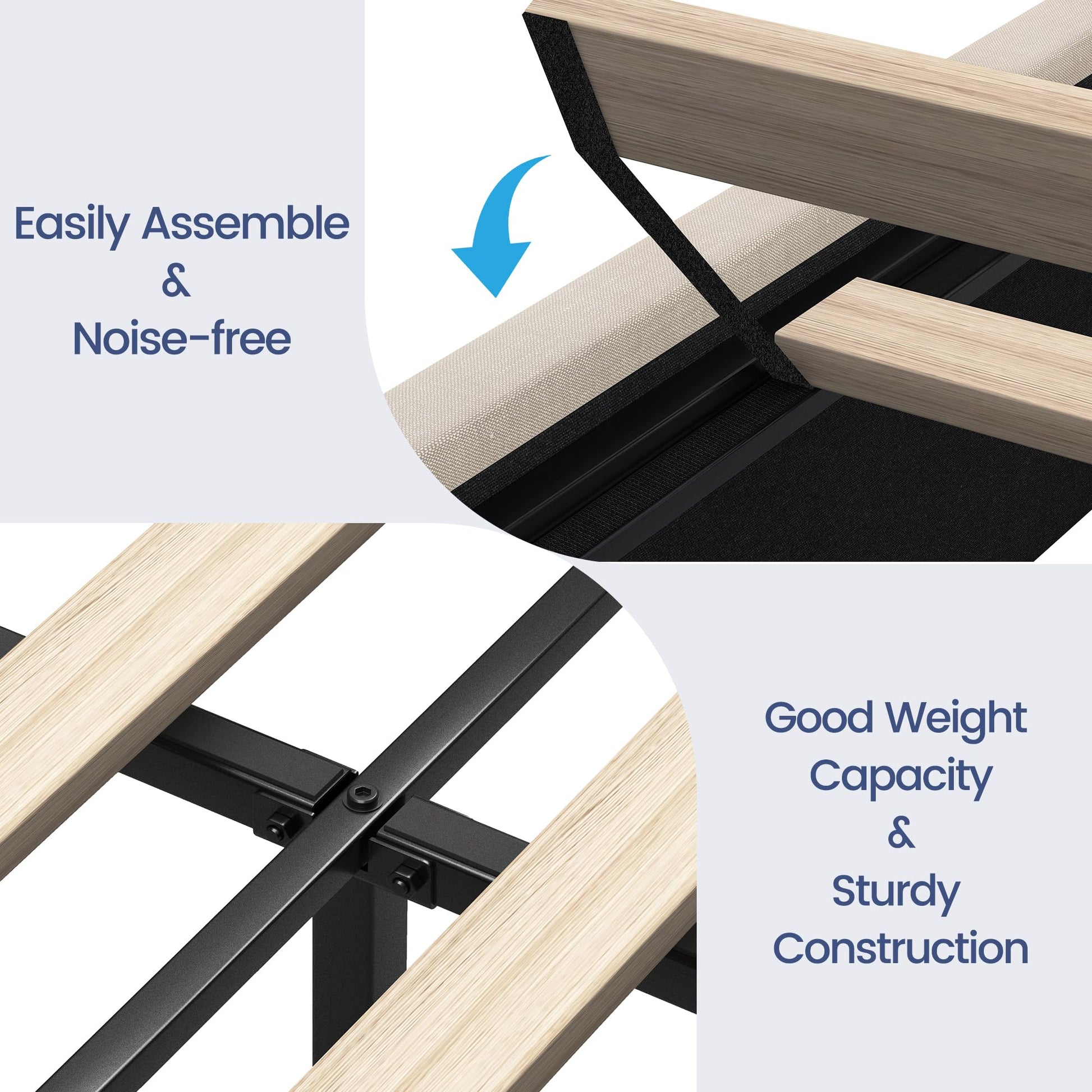 - The headboard bed frame with Eva mute bar can prevent noise from squeak. It can make sure you enjoy the peaceful night