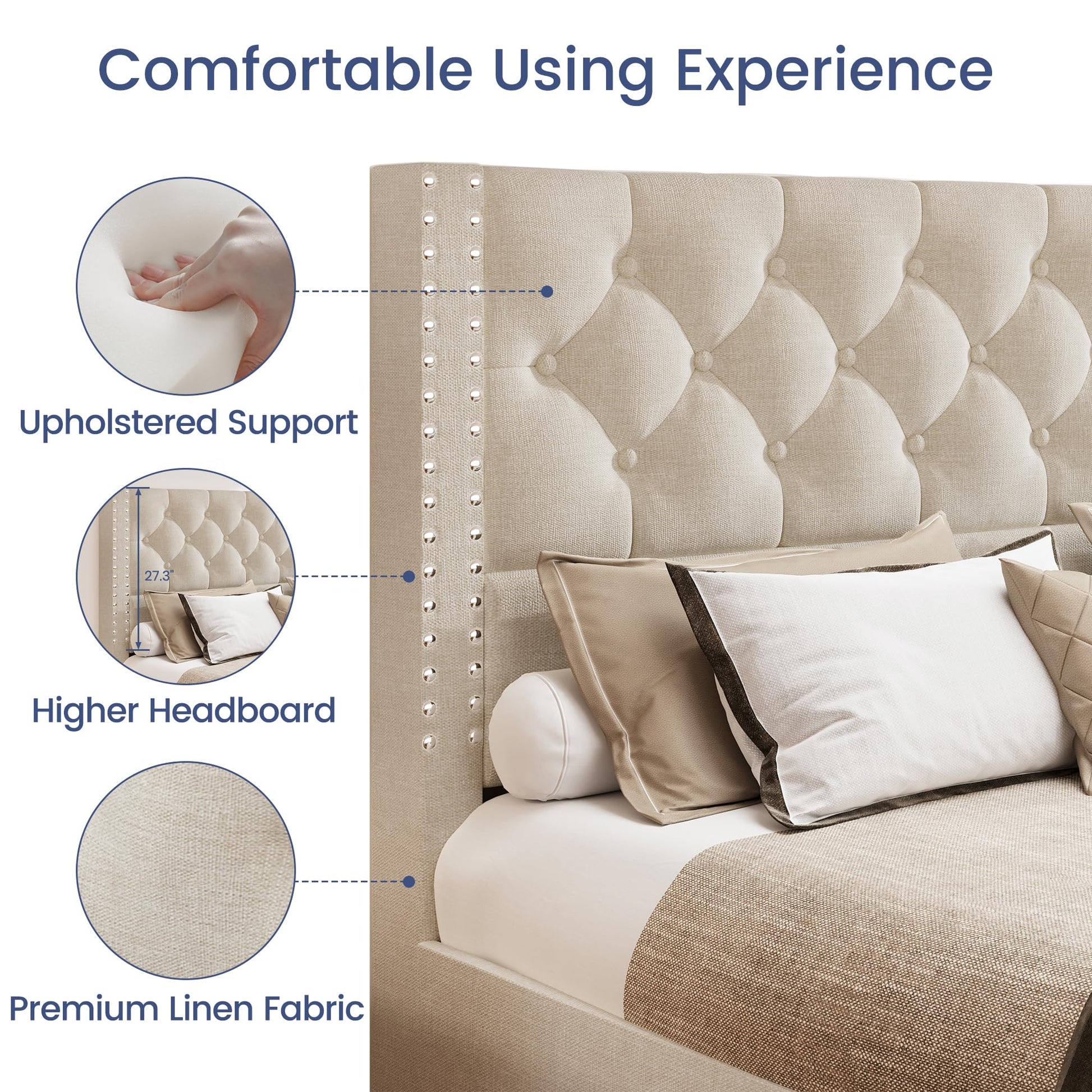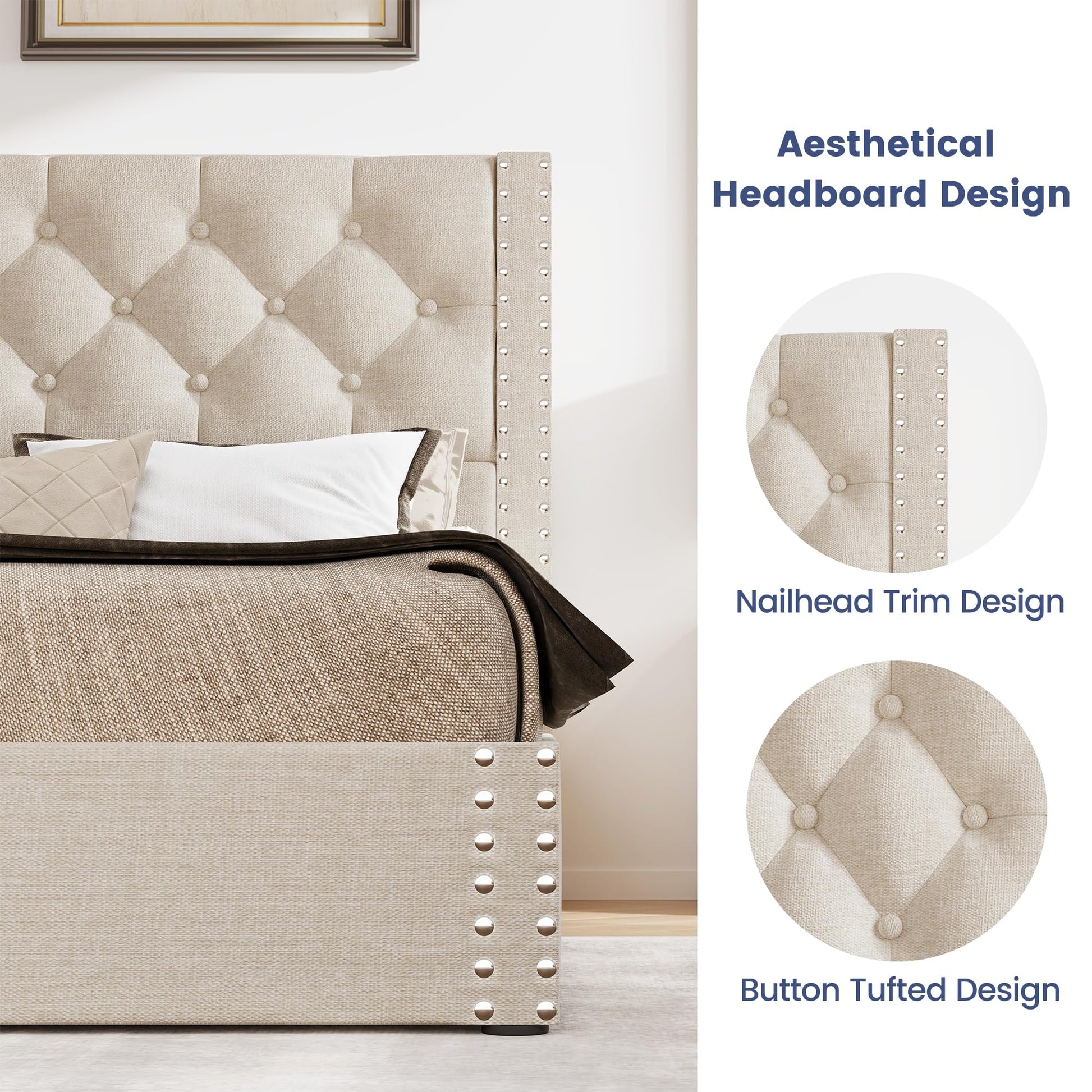 - Premium linen fabric used on the bed frame is skin-friendly and comfortable. So that you can enjoy it easily