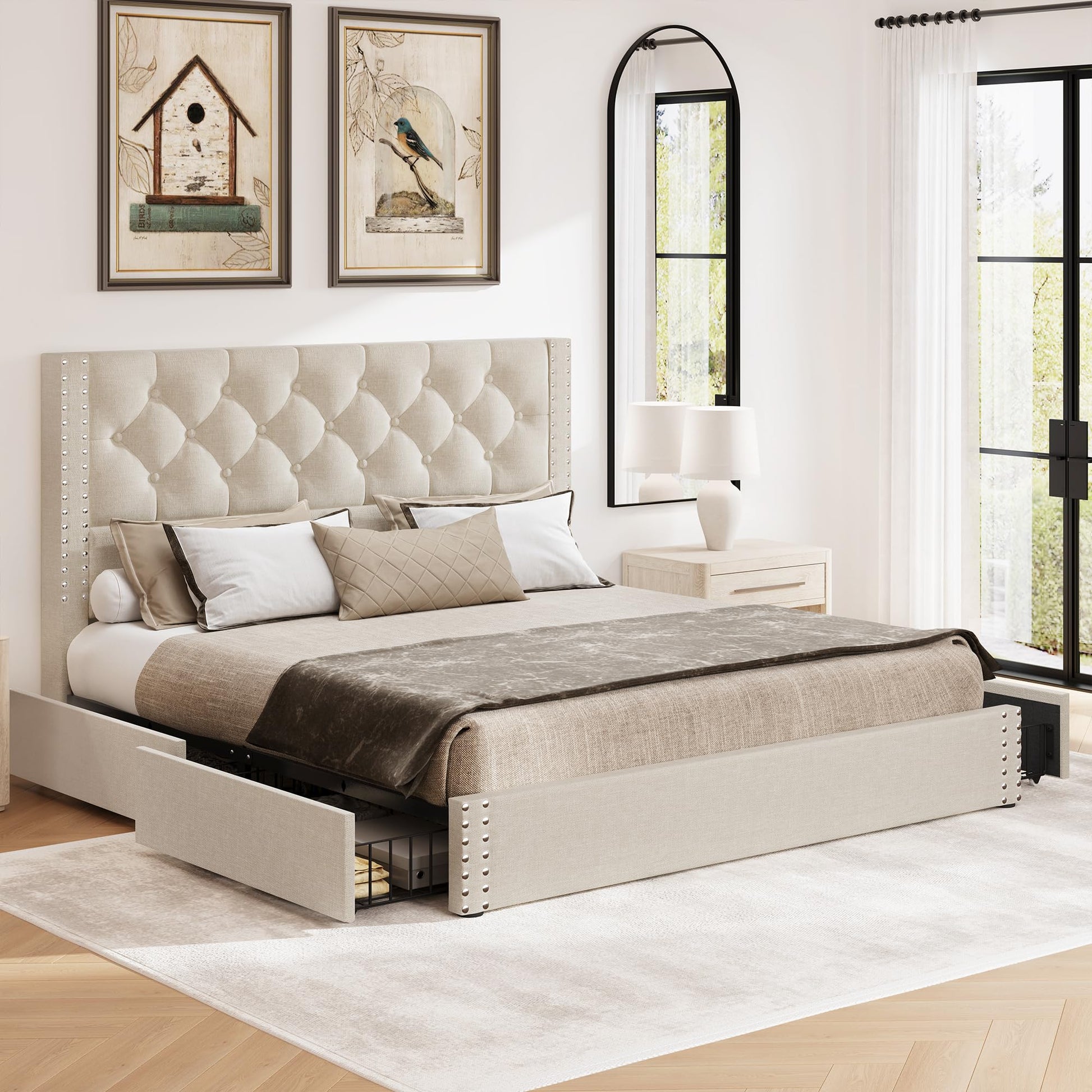 - With 4 drawers underneath, the platform bed frame offers you a large storage space, allowing you keep your bedroom ordered