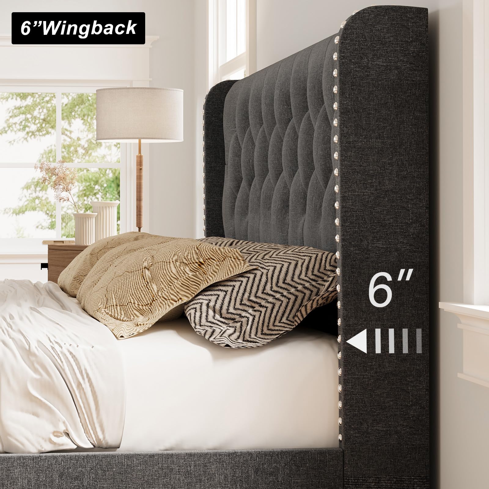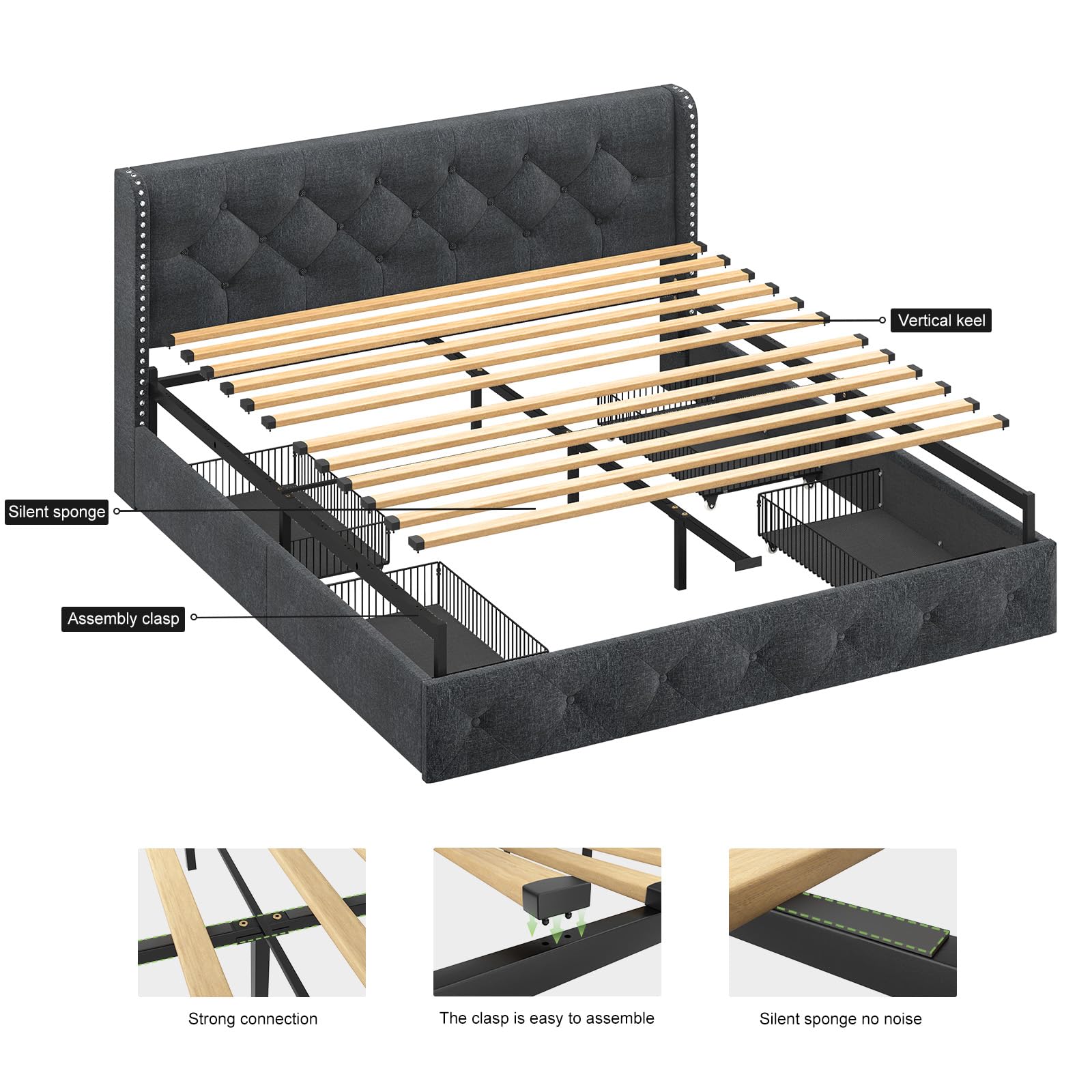 - Embedded design ensures the mattress can be firmly embedded in the queen bed frame with drawers without sliding. The wingback platform bed frame equipped with Eva mute bar prevents noise from friction, no squeaks or creeks when you laying down