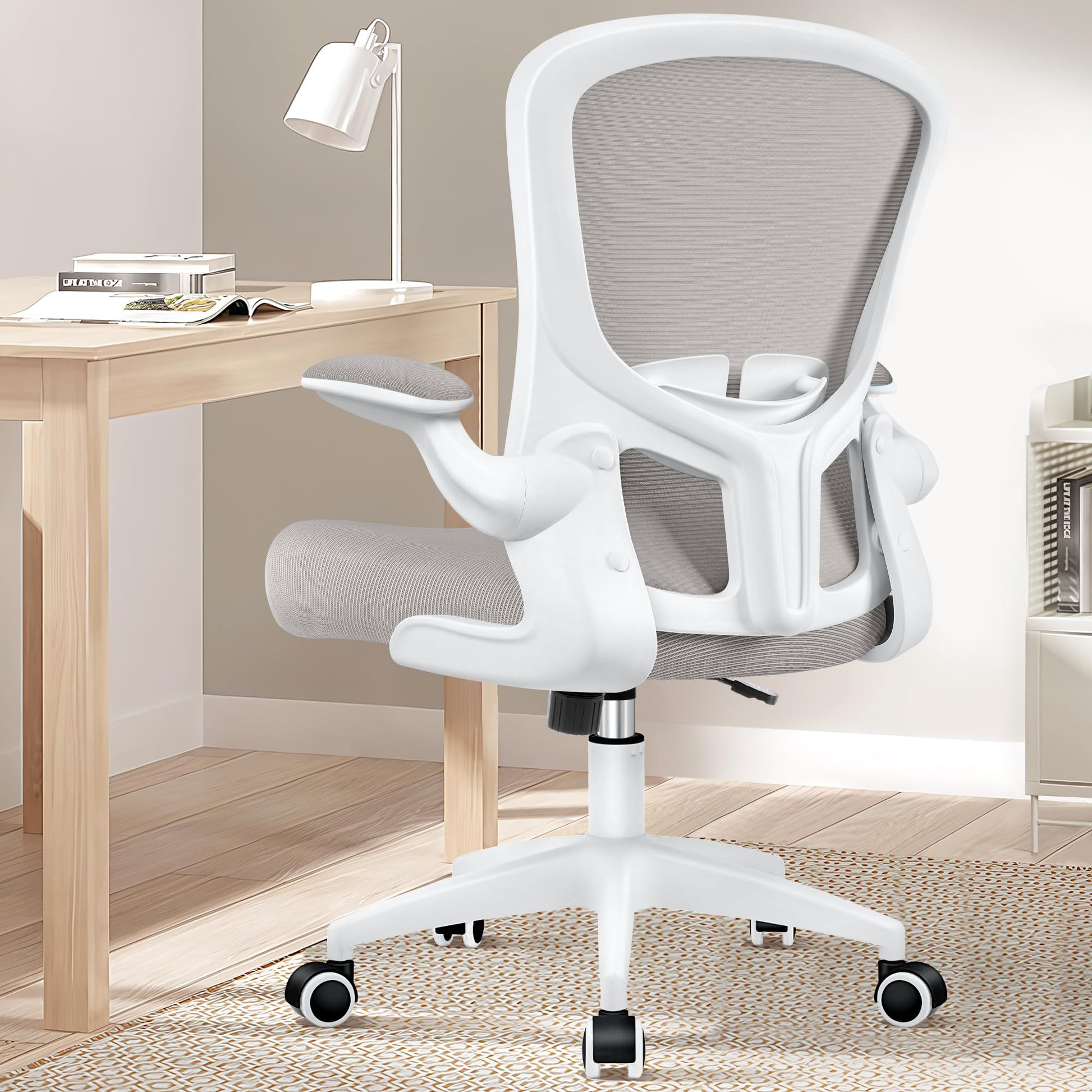 - Flip-up arms for compact storage: Soft mesh cushioned arms (armrests) are flip-up Solves the problem of "chair doesn't fit under your desk" Flipping up vertically so your arms stay neatly in the desk without getting in the way
