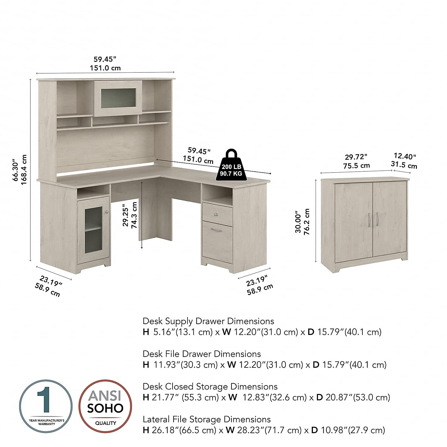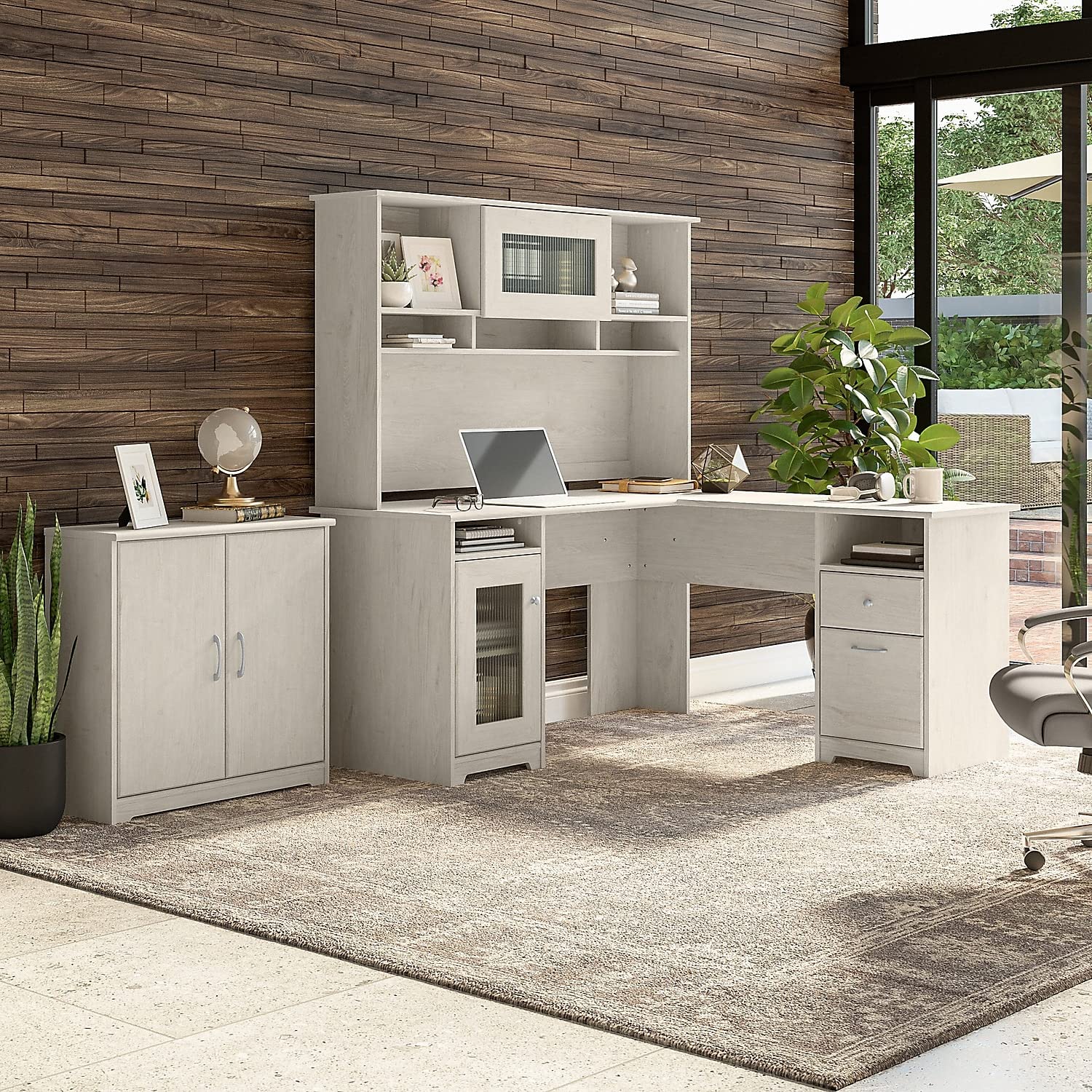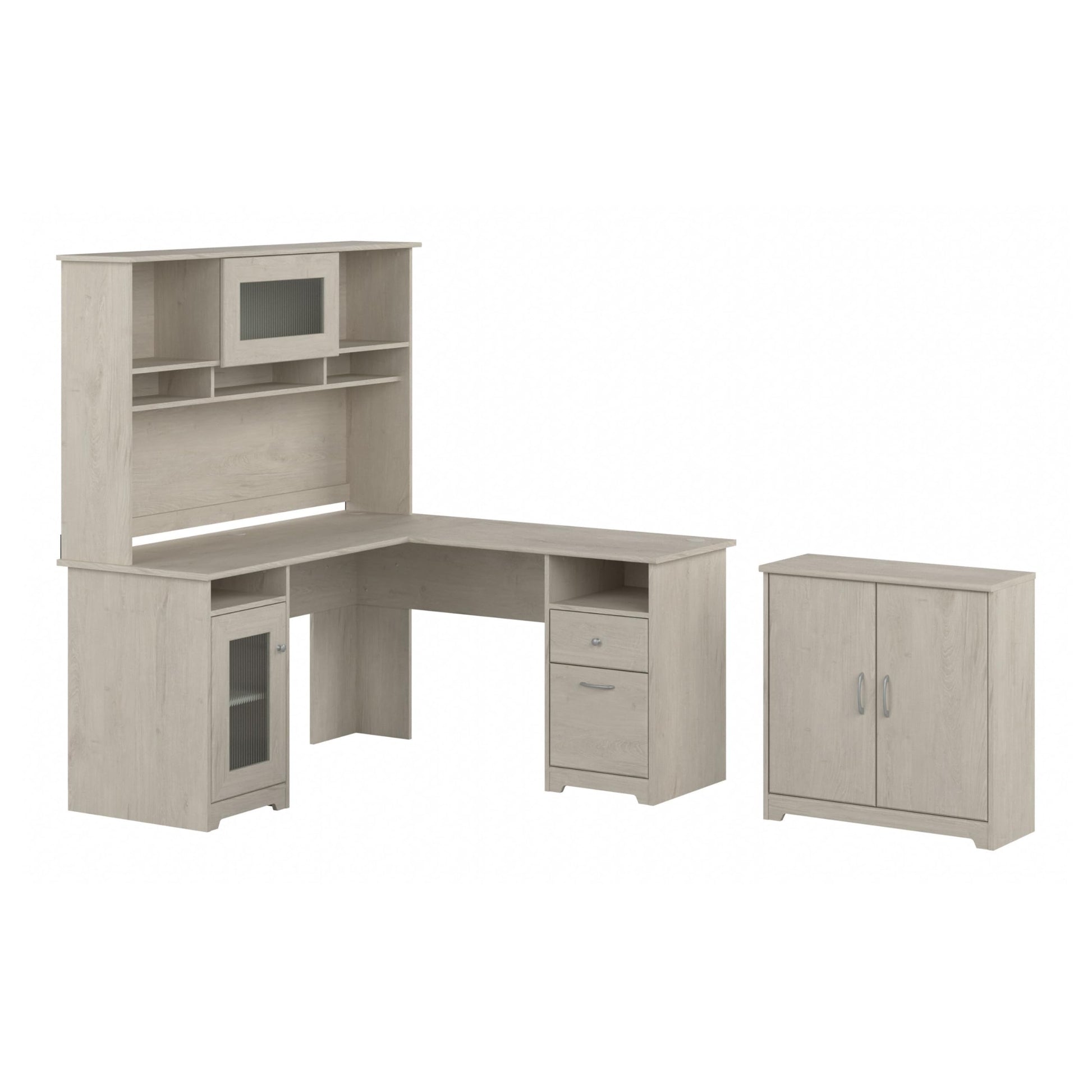 Cabot L Shaped Desk with Hutch and Small Storage Cabinet with Doors