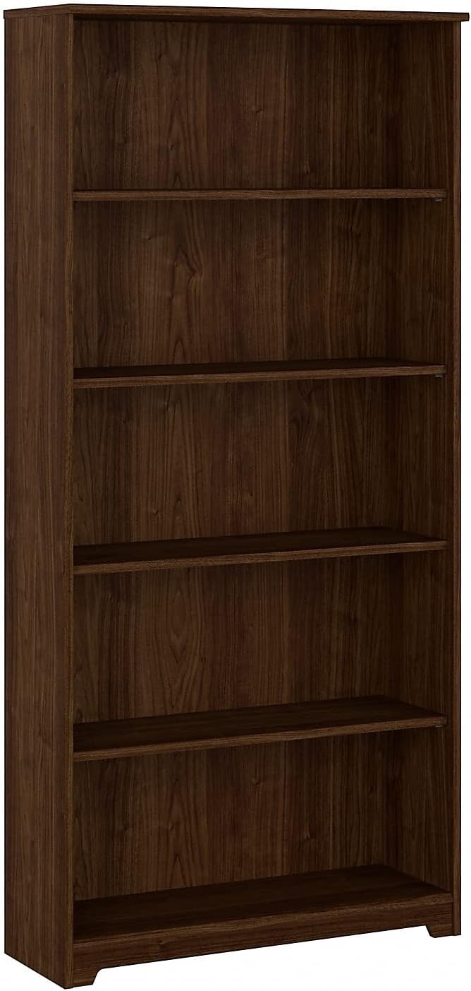 Cabot Tall 5 Shelf Bookcase Large Open Bookshelf in Espresso Oak Sturdy Display Cabinet