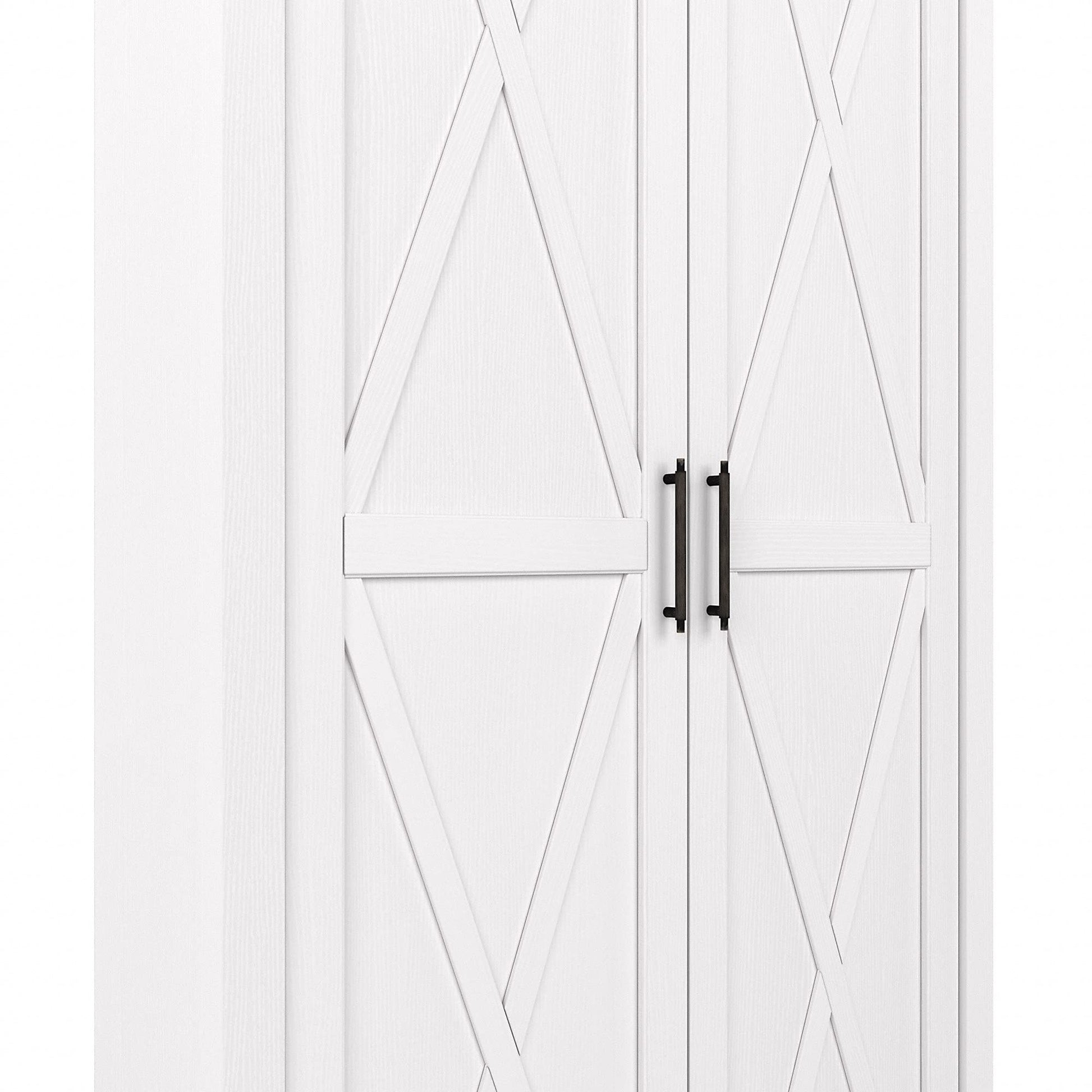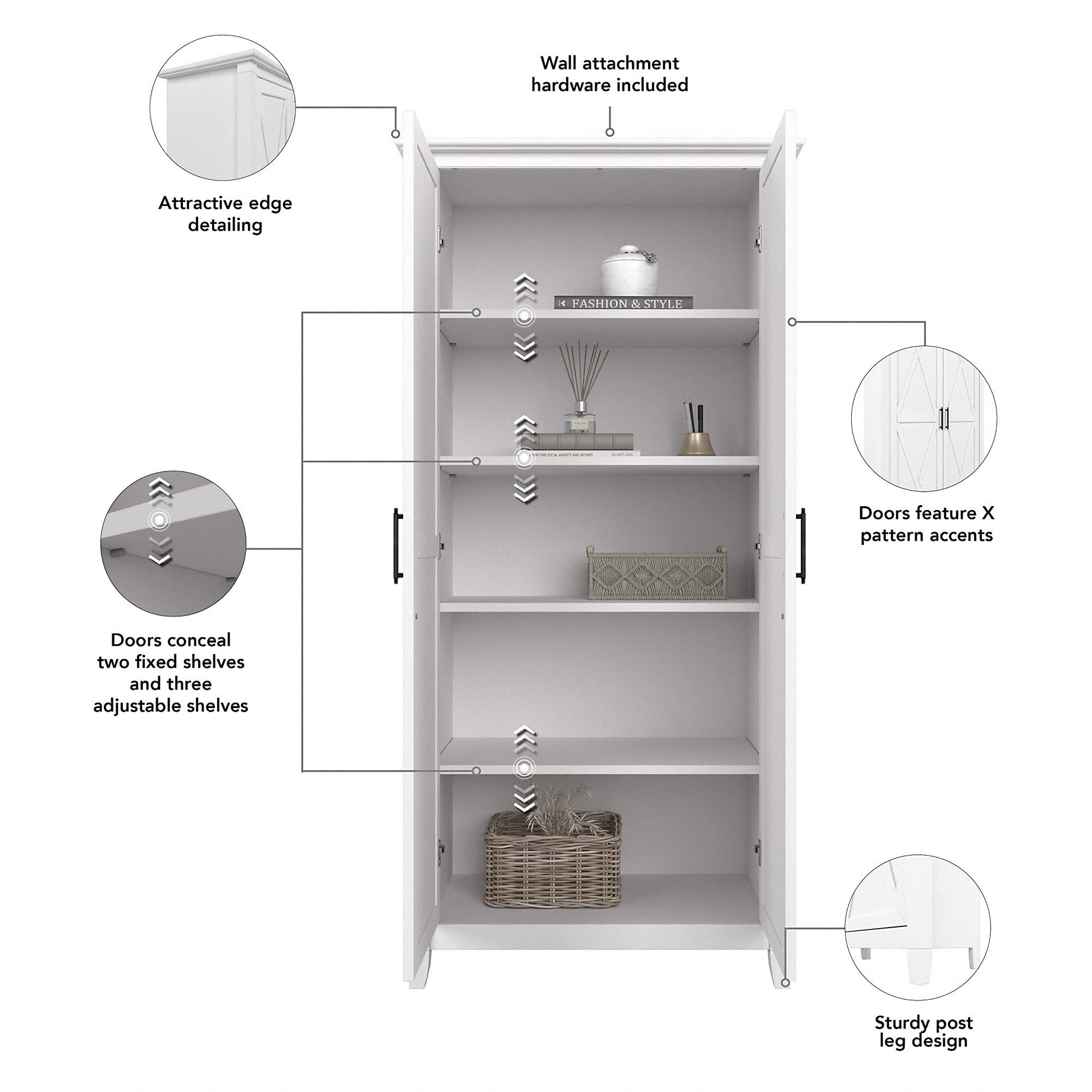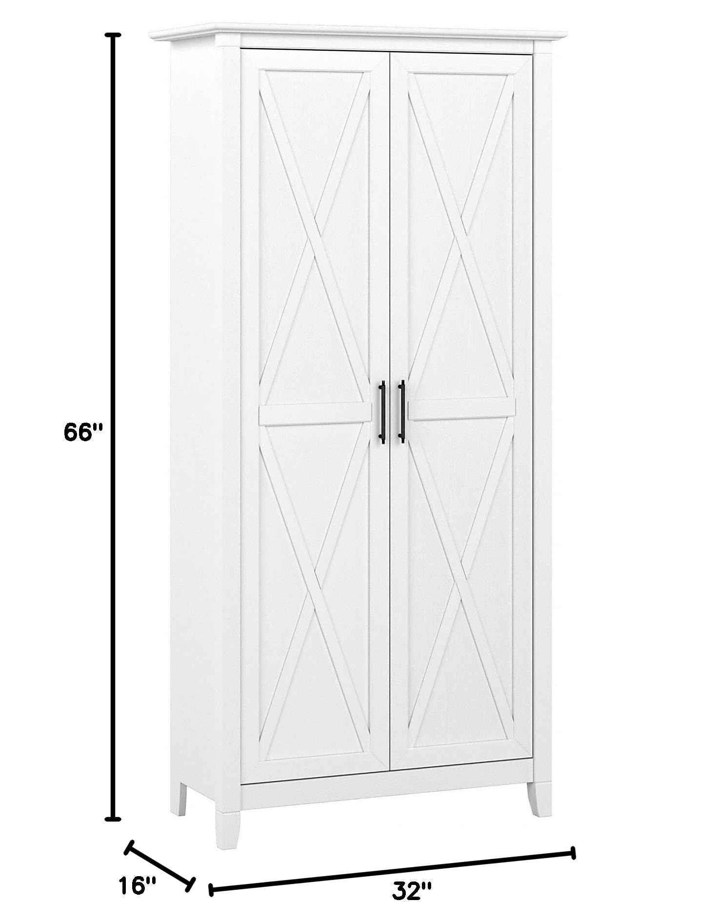 Details: The Bush Furniture Key West Tall Bathroom Cabinet with Doors and Shelves offers an organization solution that brings a touch of casual style to any residential space. Featuring a design that’s as versatile as it is practical, this freestanding bathroom cupboard provides an ideal way to store towels, toiletries, cleaning supplies, and more. Two shelves are fixed for stability while three can be raised or lowered to accommodate items of various sizes. Each shelf supports up to 25 pounds, so storing appliances, equipment, and bulk restroom materials is never a problem. The stable design also includes wall attachment hardware for family-friendly safety in your bathroom, hallway, or any other living space. A post leg design, unique X pattern accents, and a slightly distressed finish convey a casual appearance that works well with cottage, coastal, and modern farmhouse styling. This tall bathroom storage cabinet with doors has been meticulously tested to meet or exceed industry standards for safety and performance and is backed by the Bush Furniture 1 Year Manufacturer’s Warranty. See the full Key West Collection for coordinating items available, including storage, home office, living room, and bathroom furniture.
