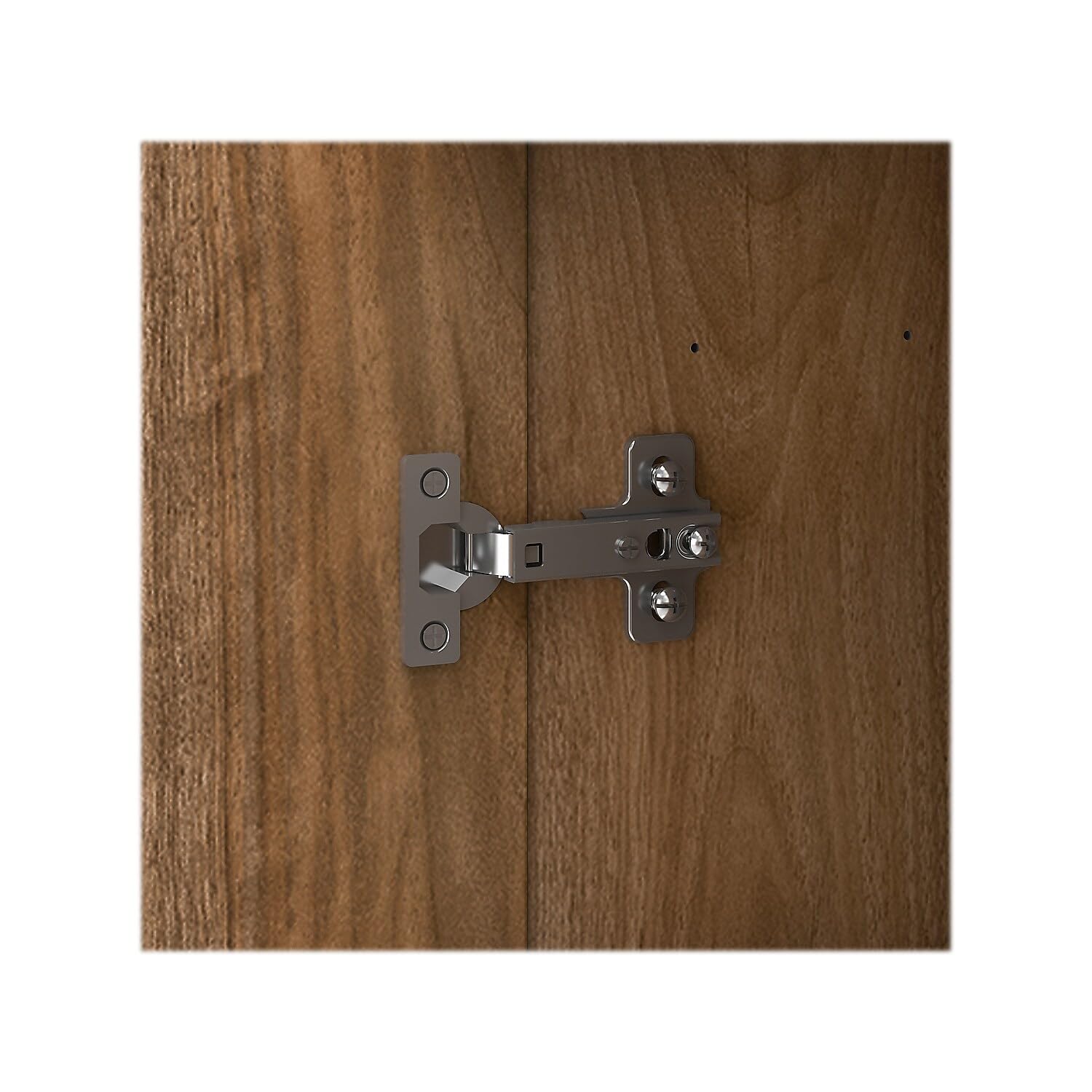 - Vertical storage cabinet contains one adjustable shelf for storing items of various sizes