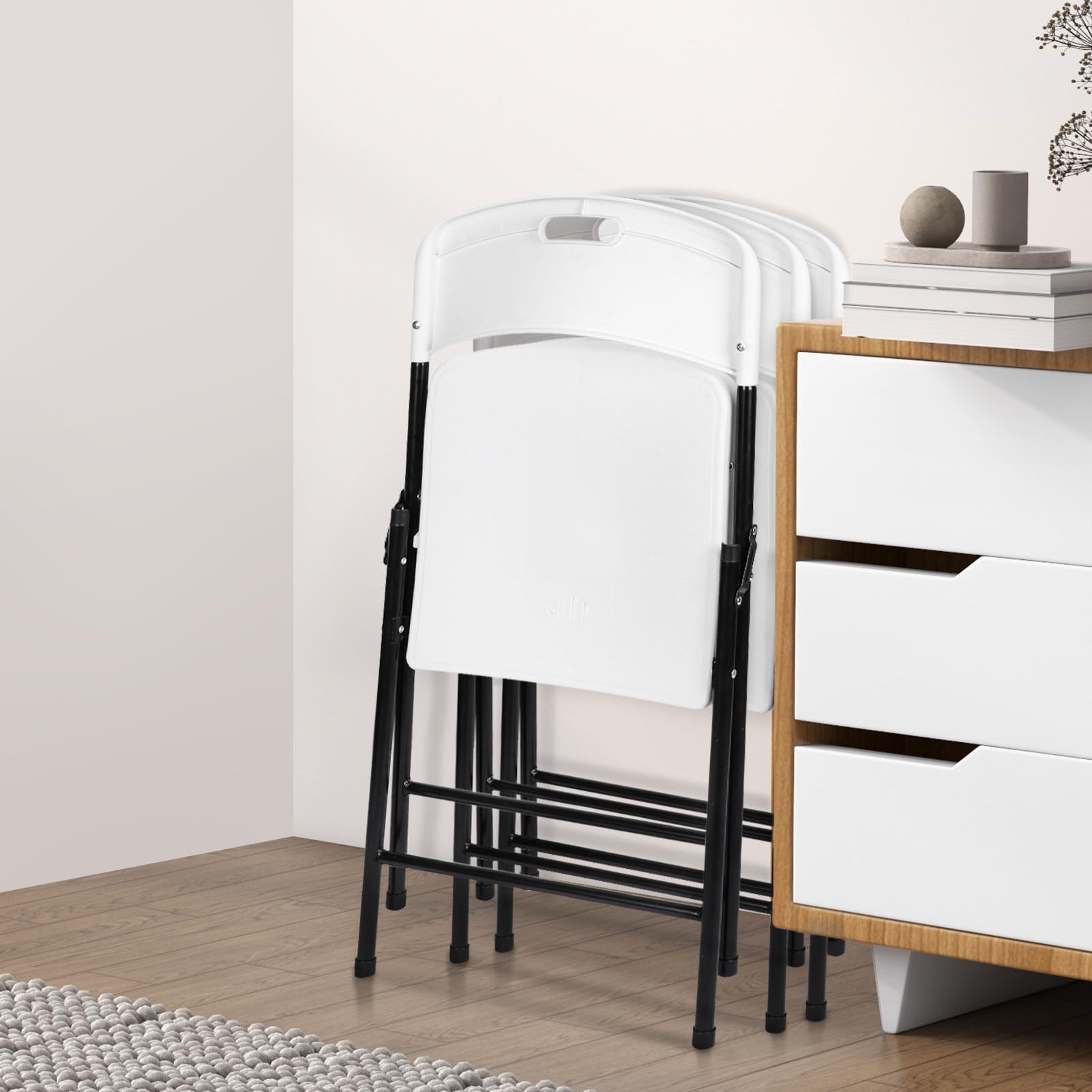 - Rugged and Stable: These folding chairs are made of high-quality PP (polypropylene) plastic and powder-coated steel frame, which is thicker, harder and more sturdy. The folding chairs can support weights up to 250 pounds