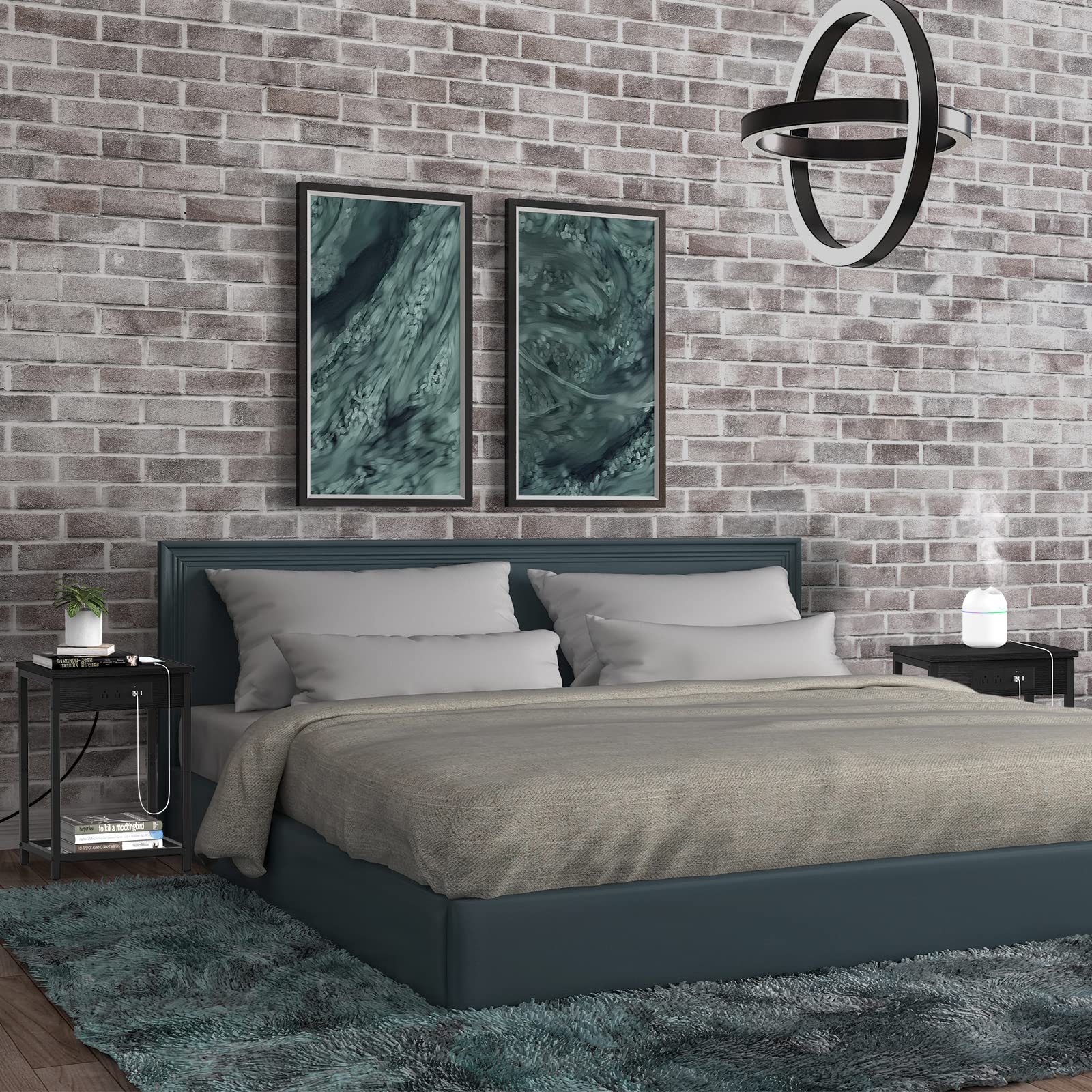 - CONVENIENT CHARGING STATION: The bedside nightstand with charging station are designed in perfect combination. Featuring three high-efficiency USB charging ports and two 3-prong AC power outlets for your convenience, we designed these black bedside tables to perfectly accent your couch or living room chair.