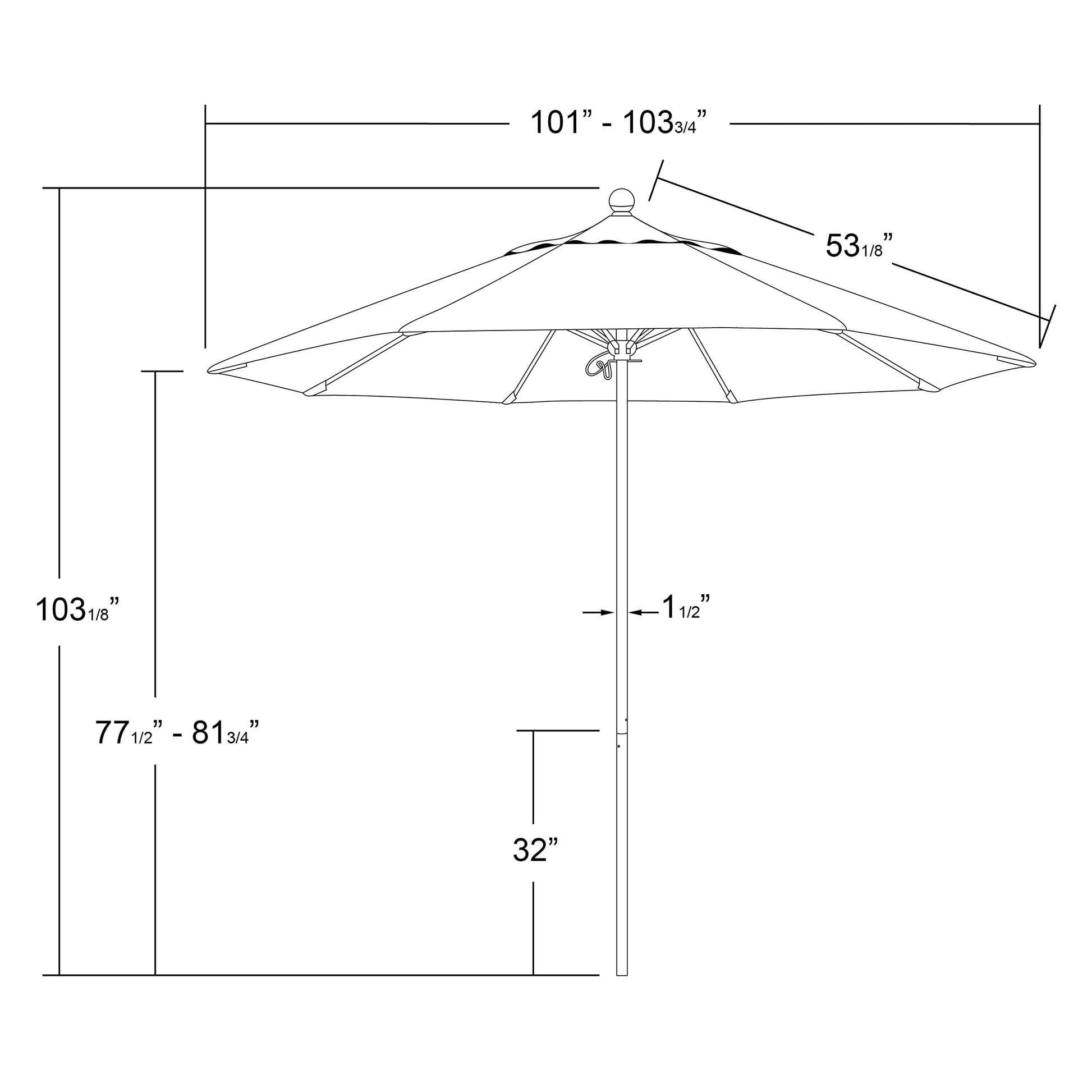 California Umbrella Venture Series Push Open Commercial Patio Umbrella, 9' Round, Sunbrella, ALTO908117-5416, Aruba