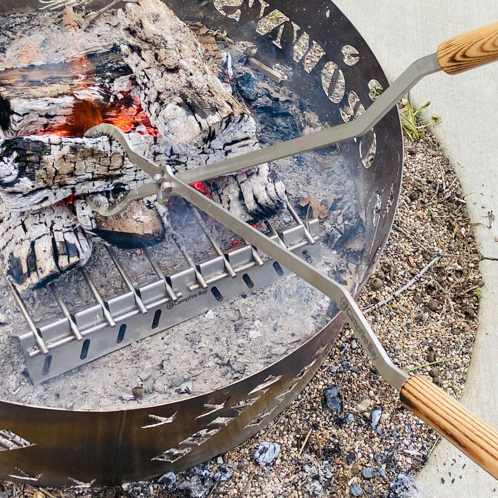 - The Campfire Bay fire pit tongs is a superior campfire tool designed and manufactured to handle logs around the campfire with ease.