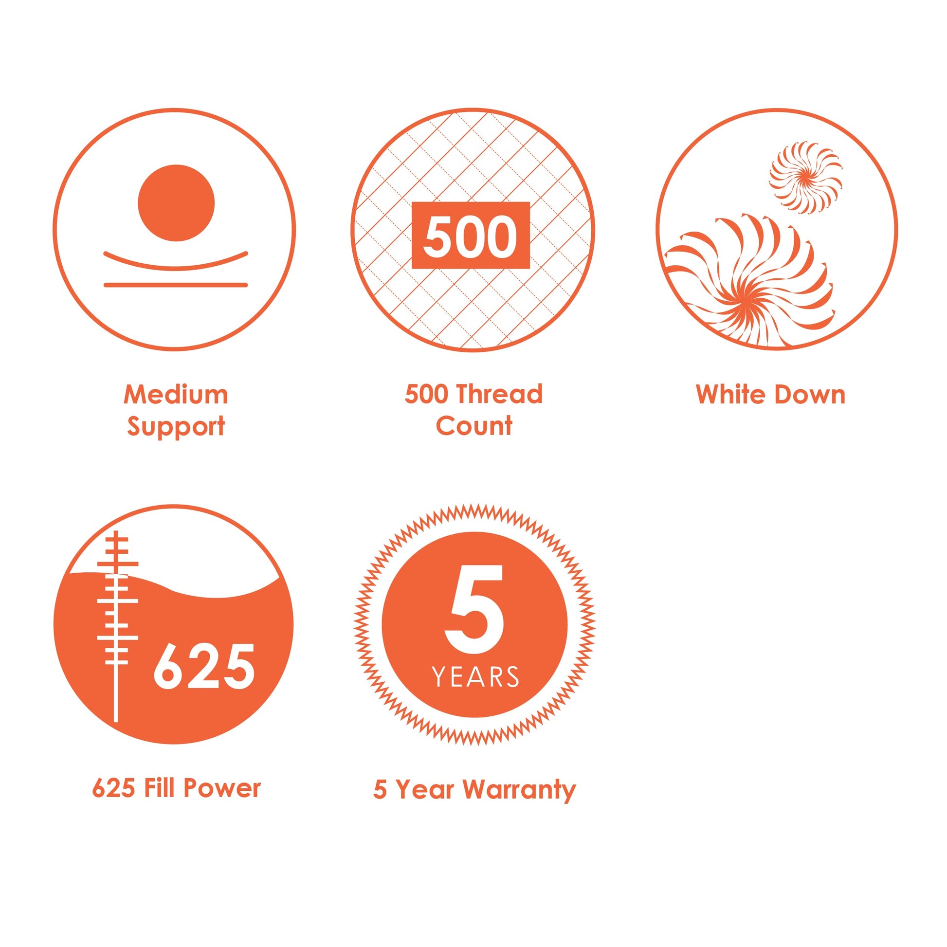 - White Down: Bright white appearance with lightest, fluffiest and warmest type of fill available