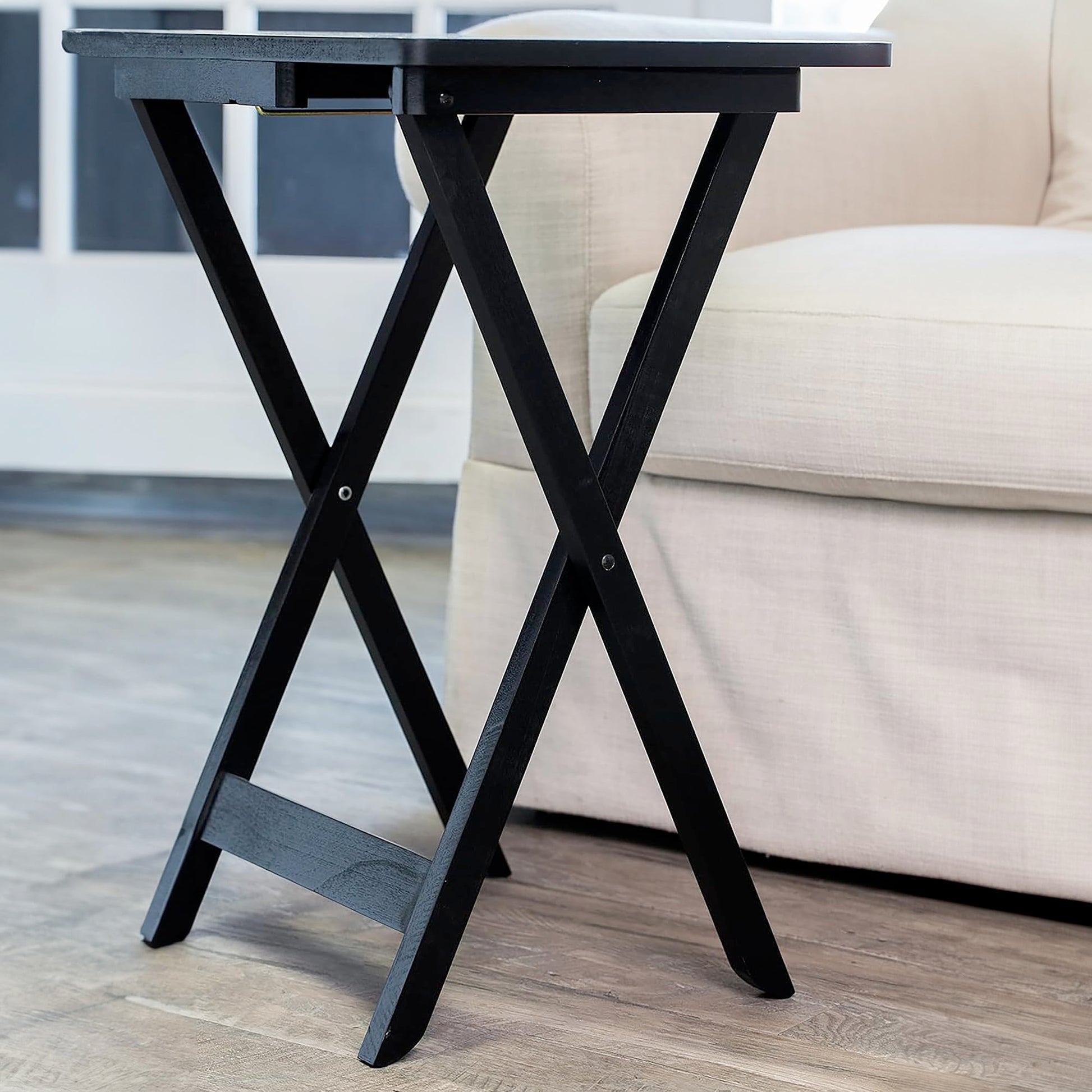 - ADDITIONAL DINING SPACE: Cape Craftsmen's TV Trays allow for extra table space and make a great addition to any living room, den, man cave, or kitchen. Folds Flat for Storage The convenient size and ability to fold up flat for storage purposes will make your life easier. Sturdy Storage Stand Included