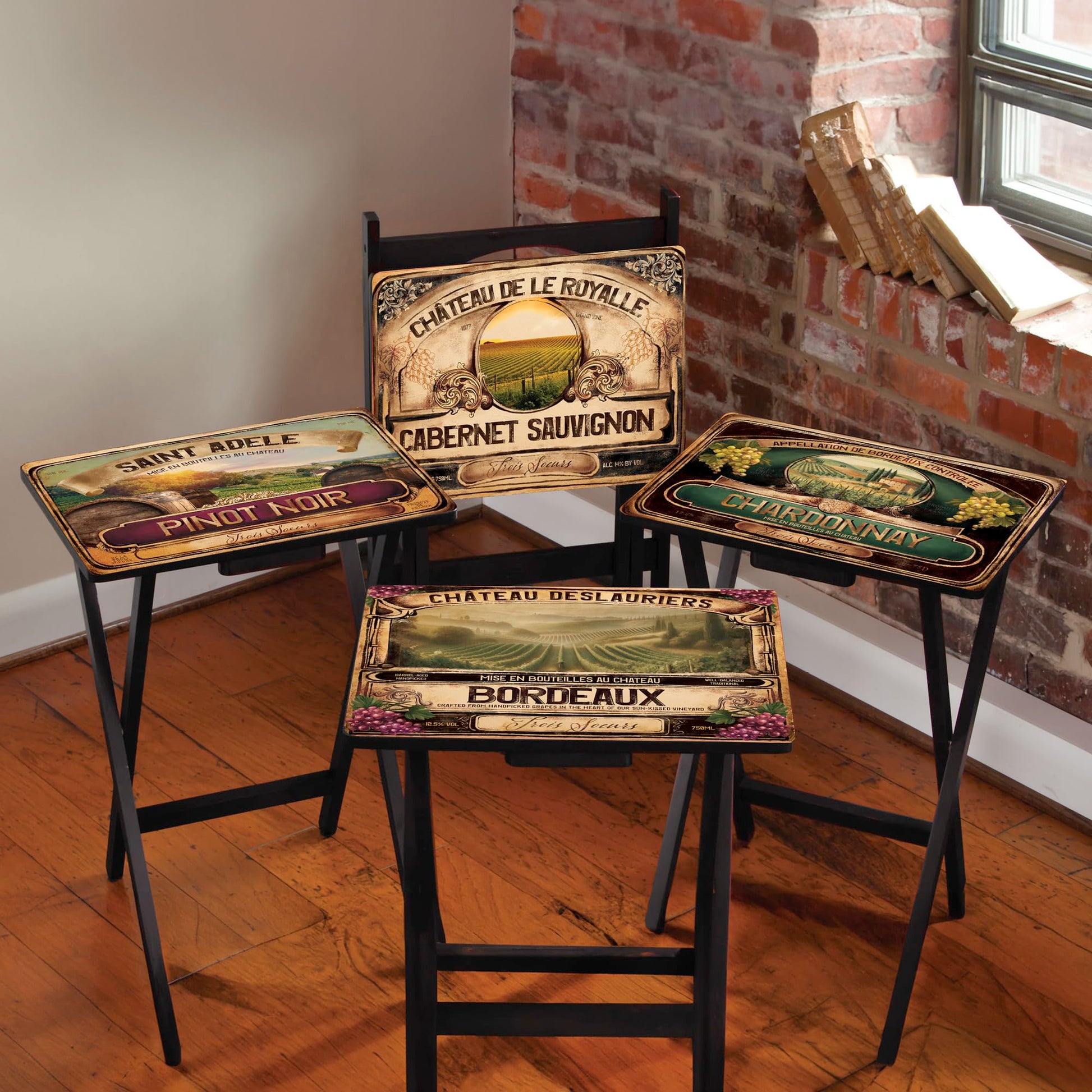 Wine Label Classic TV Trays Table | Set of 4 | Rectangular Folding Couch Trays