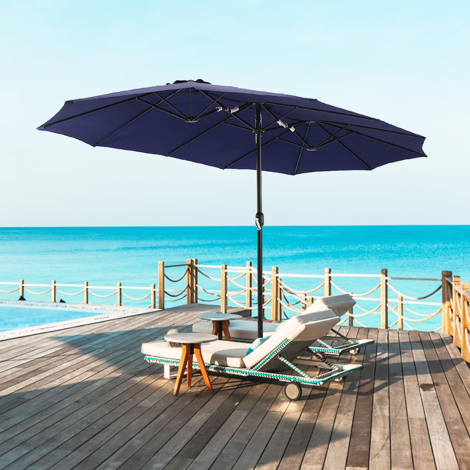 - DOUBLE-SIDED UMBRELLA15FT x 9 FT market patio umbrella provides larger shading area up to 133 square feet shade area when fully open.Bringing a shady feel to a sultry afternoon. Note: The pole diameter is 1.9 inches.Before purchasing, please ensure the umbrella fits your outdoor table by checking the hole diameter.
