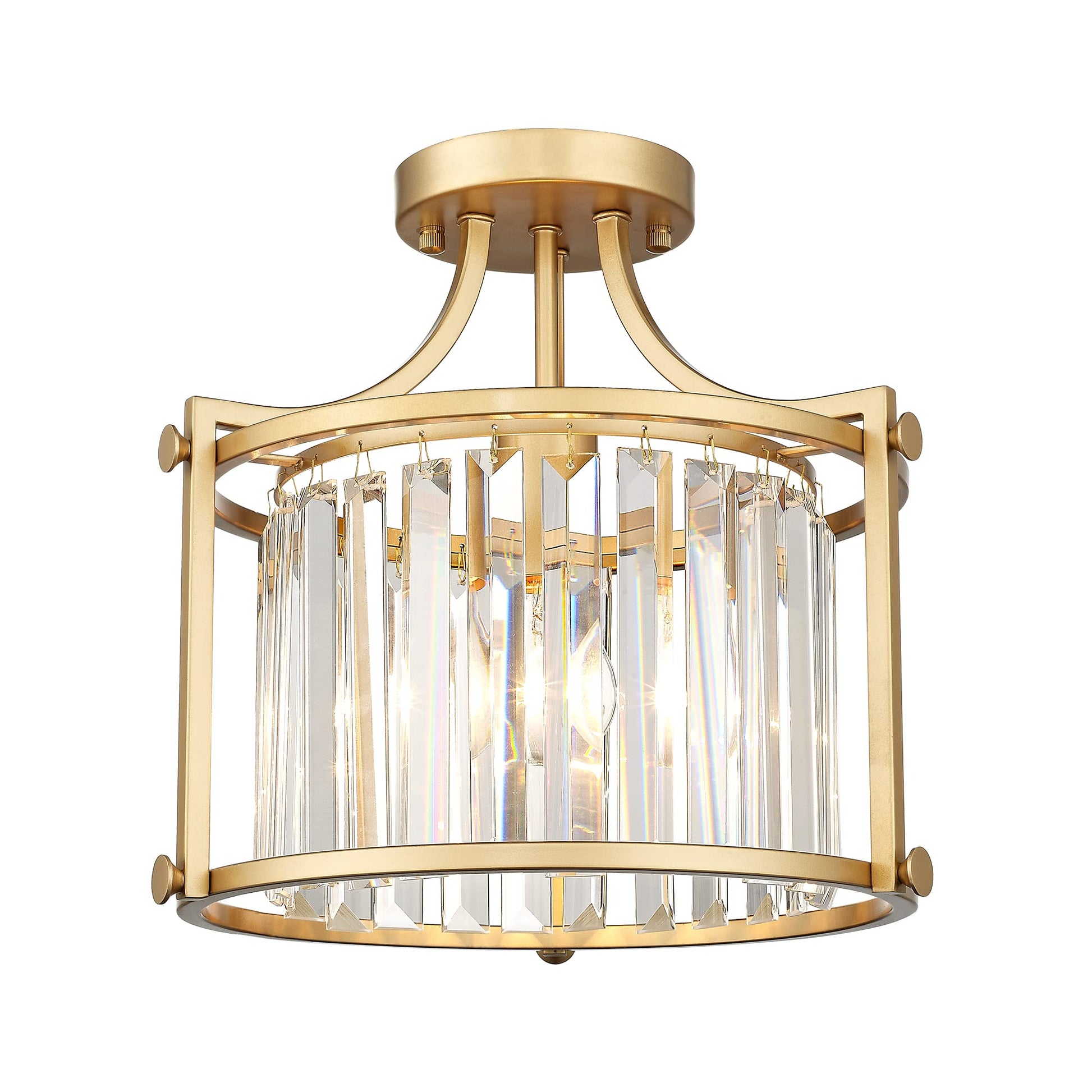 Crystal Semi Flush Mount Chandelier, 11'' Gold Ceiling Light, Modern Flush Mount Light