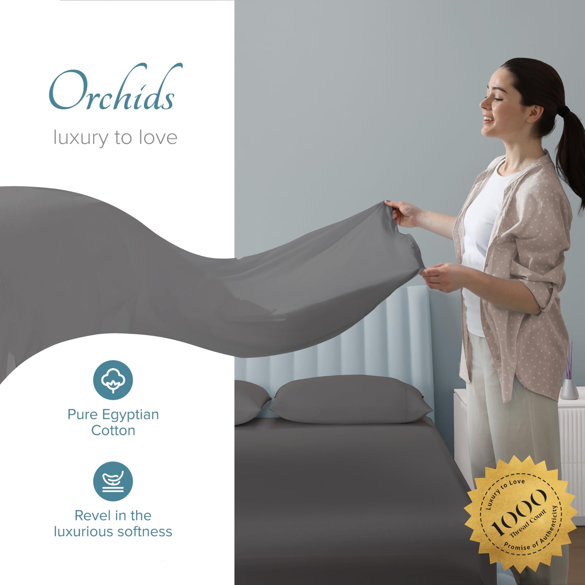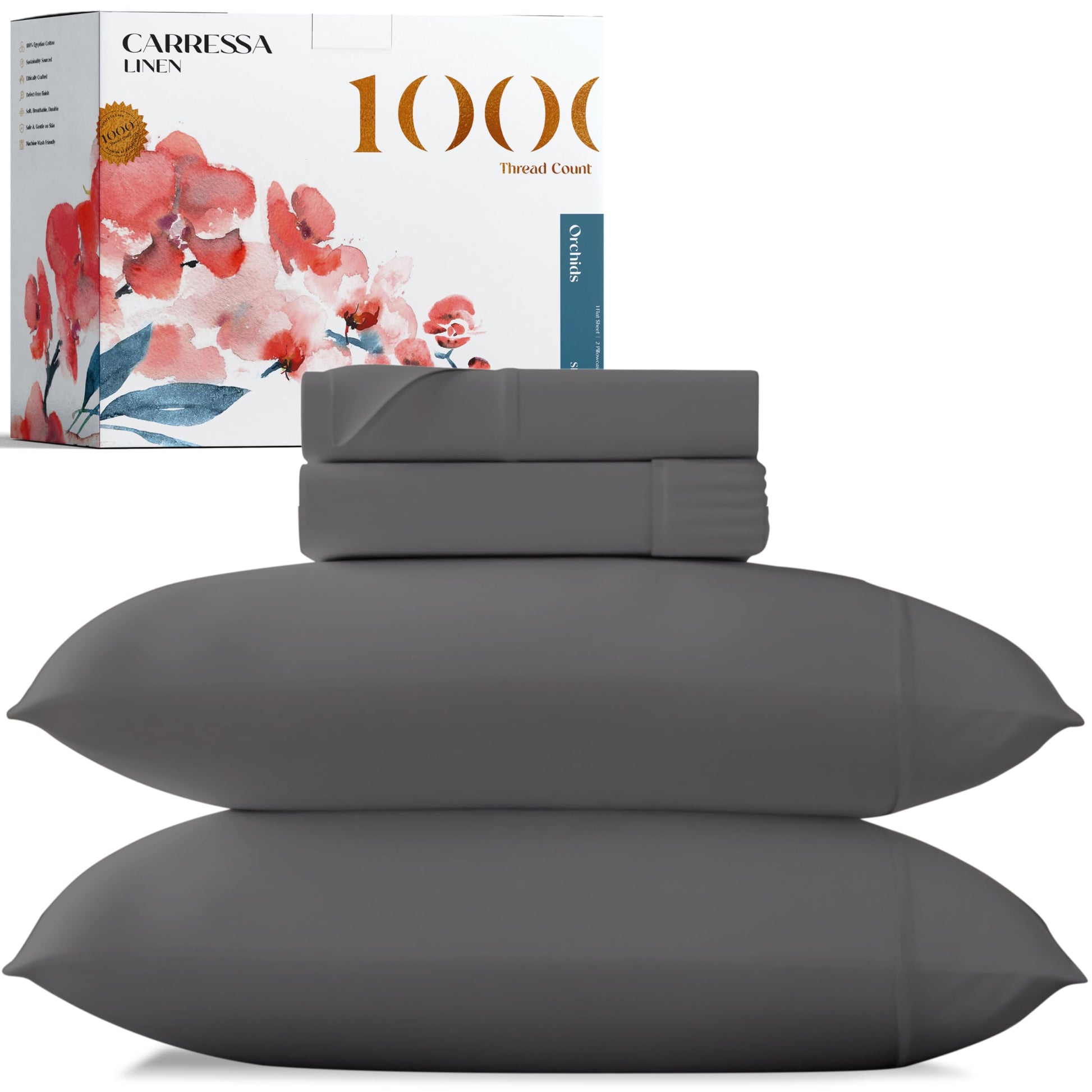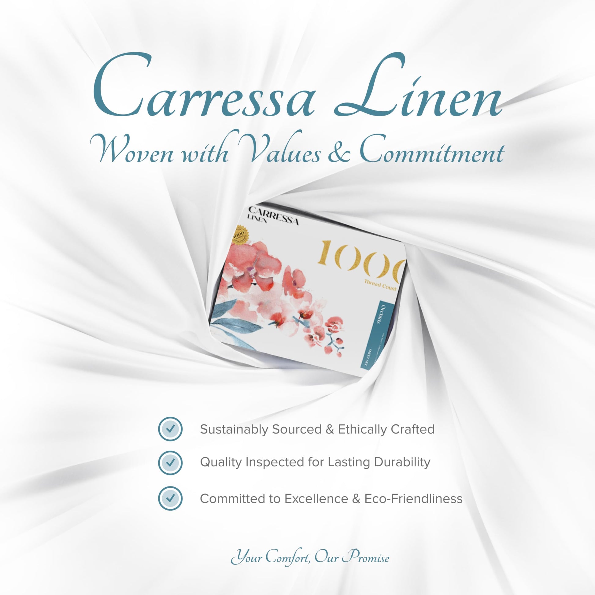 - When crafting our authentic, 1000 Thread Count sets, Carressa Linen uses only pure, 100% long staple cotton yarns, which are renowned for their superior quality and durability. A sateen finish offers a lustrous look like silk or satin, yet more breathable and natural. Made of natural fibers, these top-performance sheets are the ultimate sheets for night sweats. They’re also as simple to care for as wrinkle-free sheets.