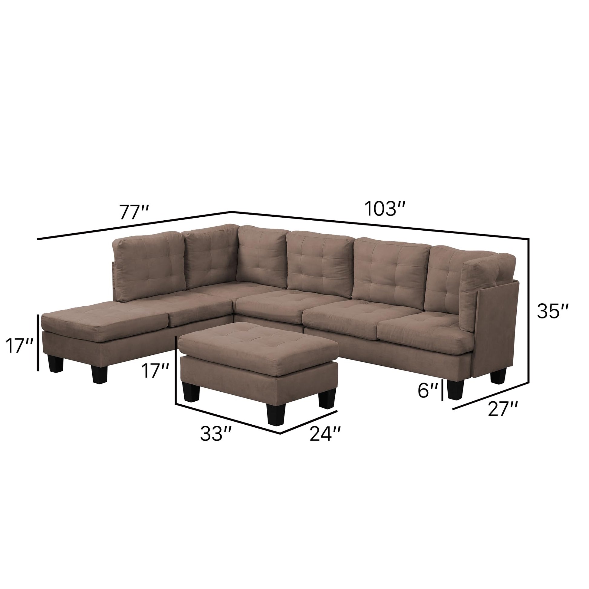 Modern Sectional Sofa L Shaped Couch with Reversible Chaise & Ottoman