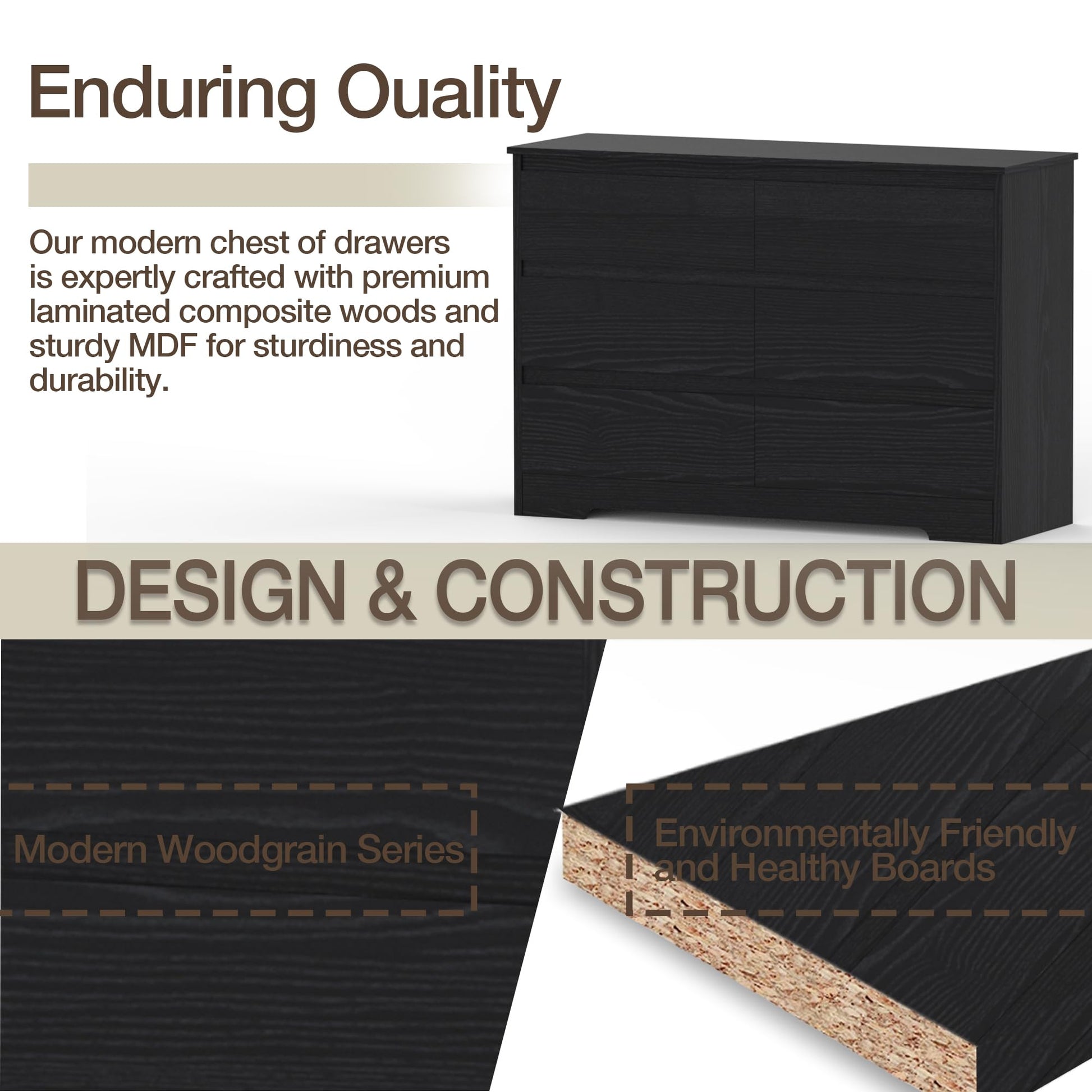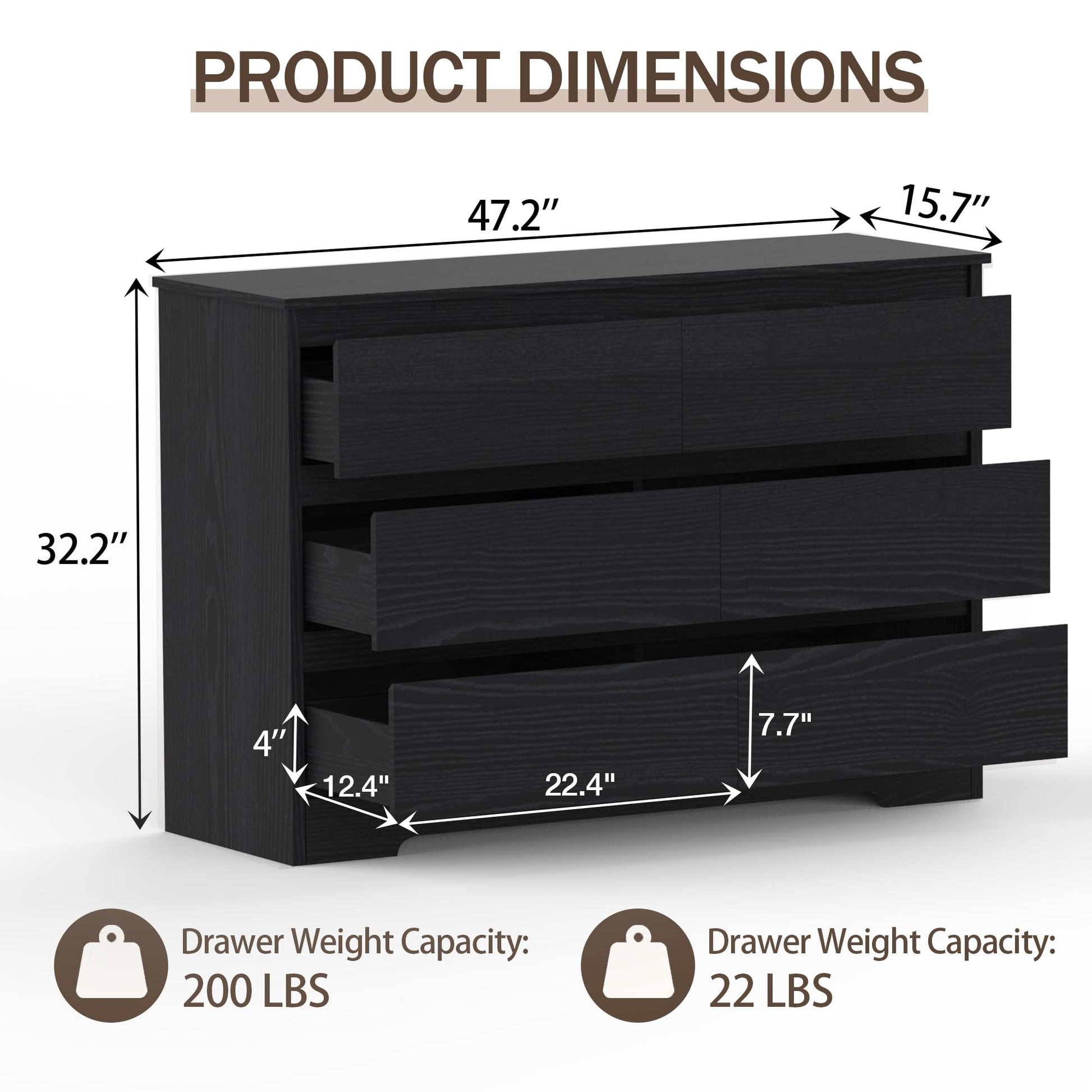 - Ample Drawer Space: The dresser's overall size is 47.2"W x 15.7"D x 32.2"H, each of the 6 drawers measuring 22.4" W x 12.4" D x 7.7" H. Providing ample storage for your clothing, accessories, and personal items. Experience the joy of keeping your belongings organized and easily accessible.