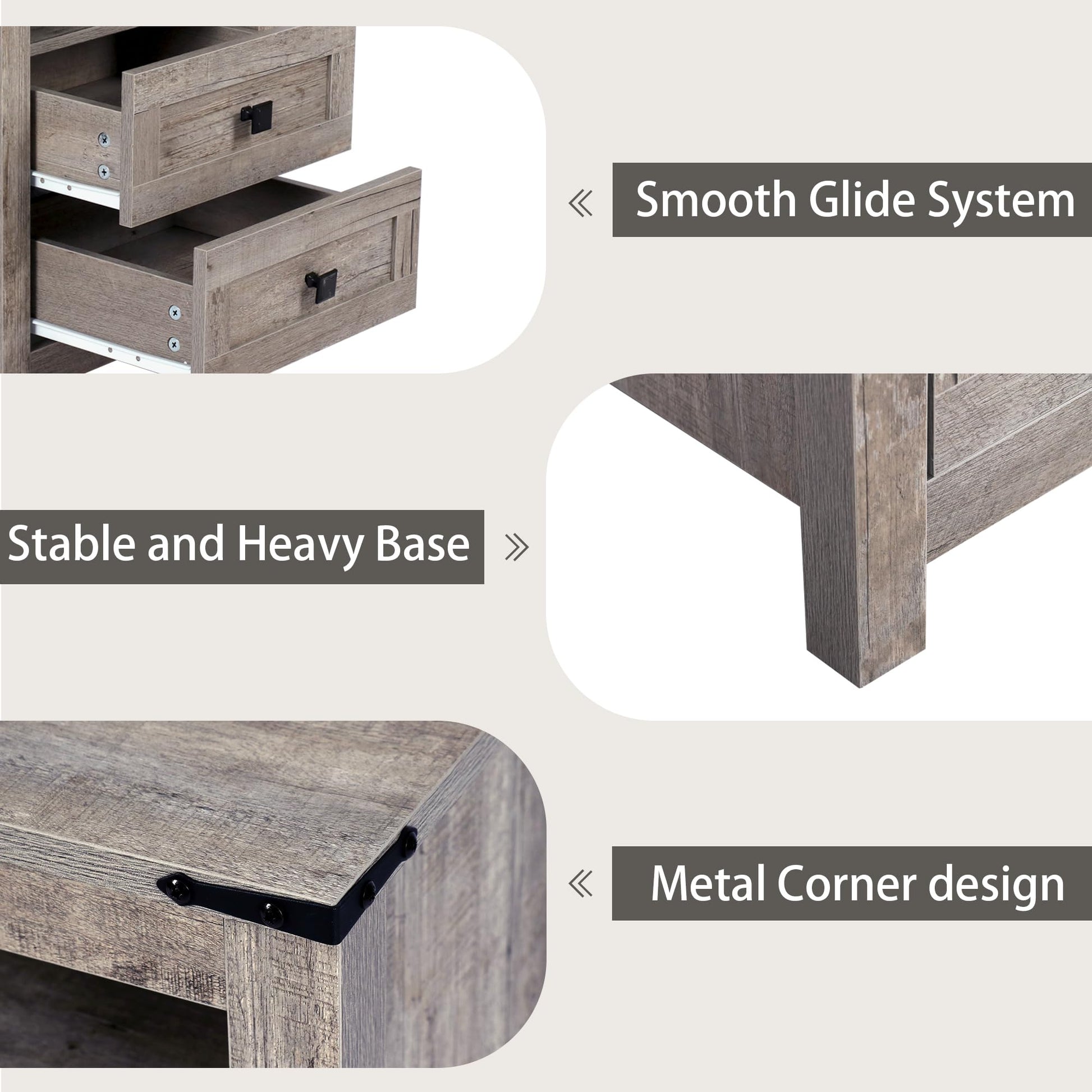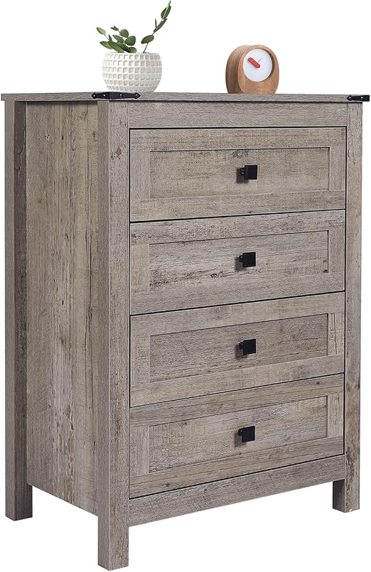 - The drawers have smooth rails that make it easy to access items with just a push or pull. Rest assured with a stable and heavy base that provides strong support for your Wood Dresser. Elevate the aesthetic appeal of your room with the sleek and modern metal corner design.