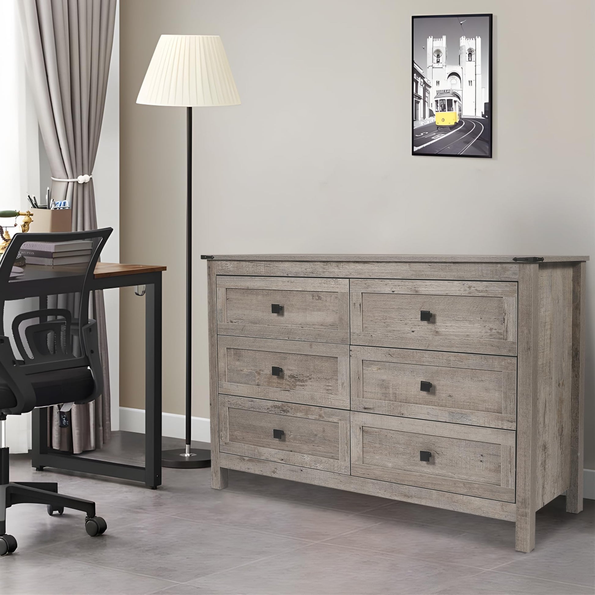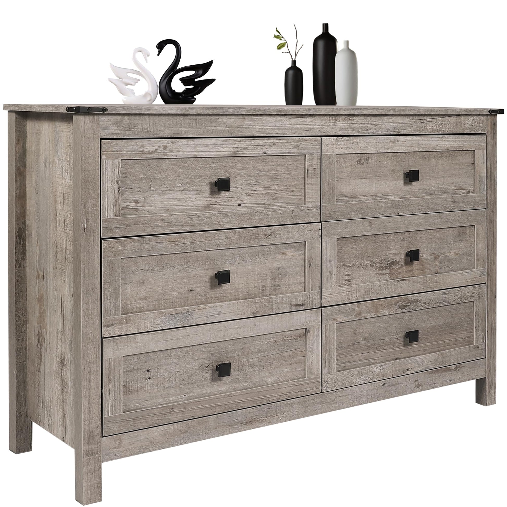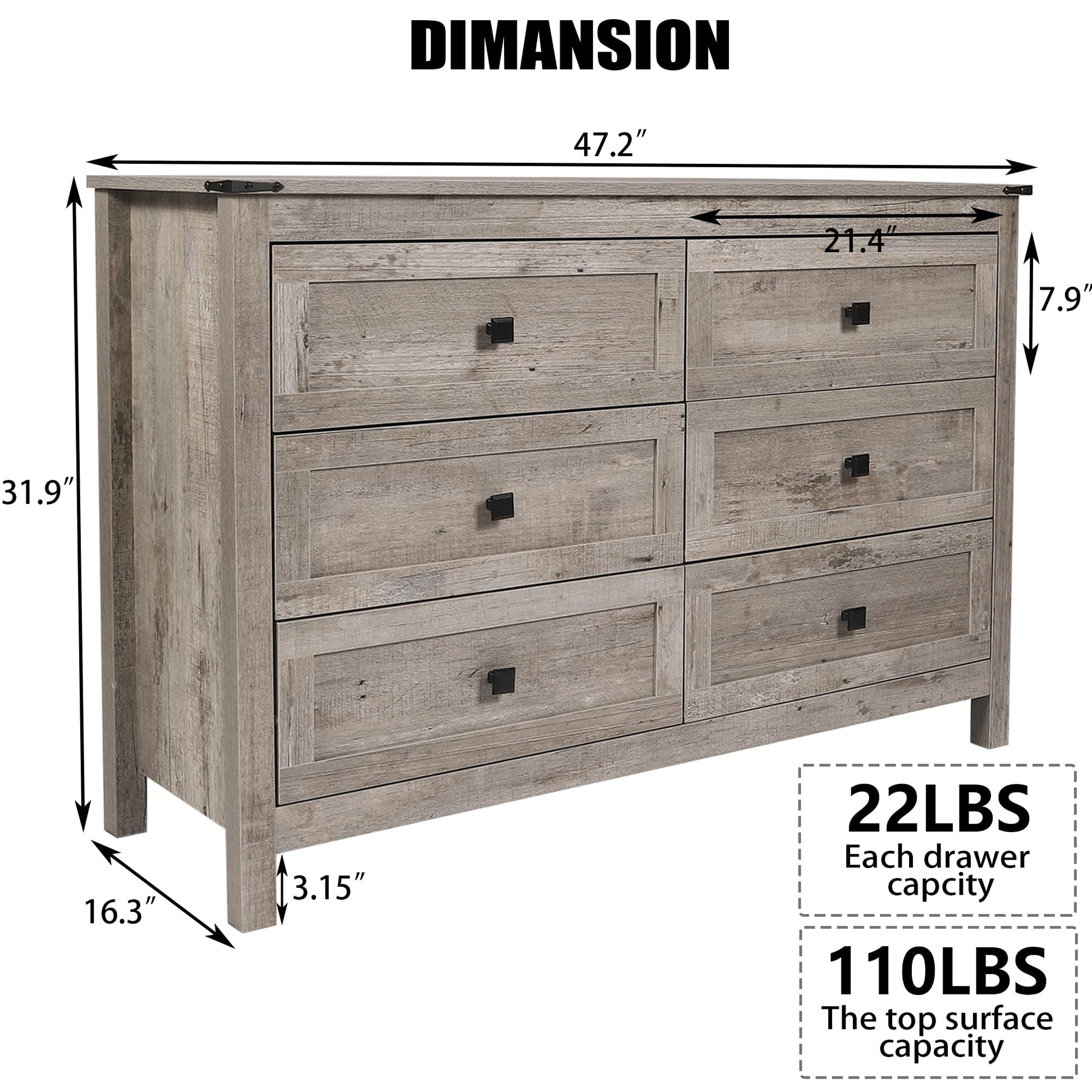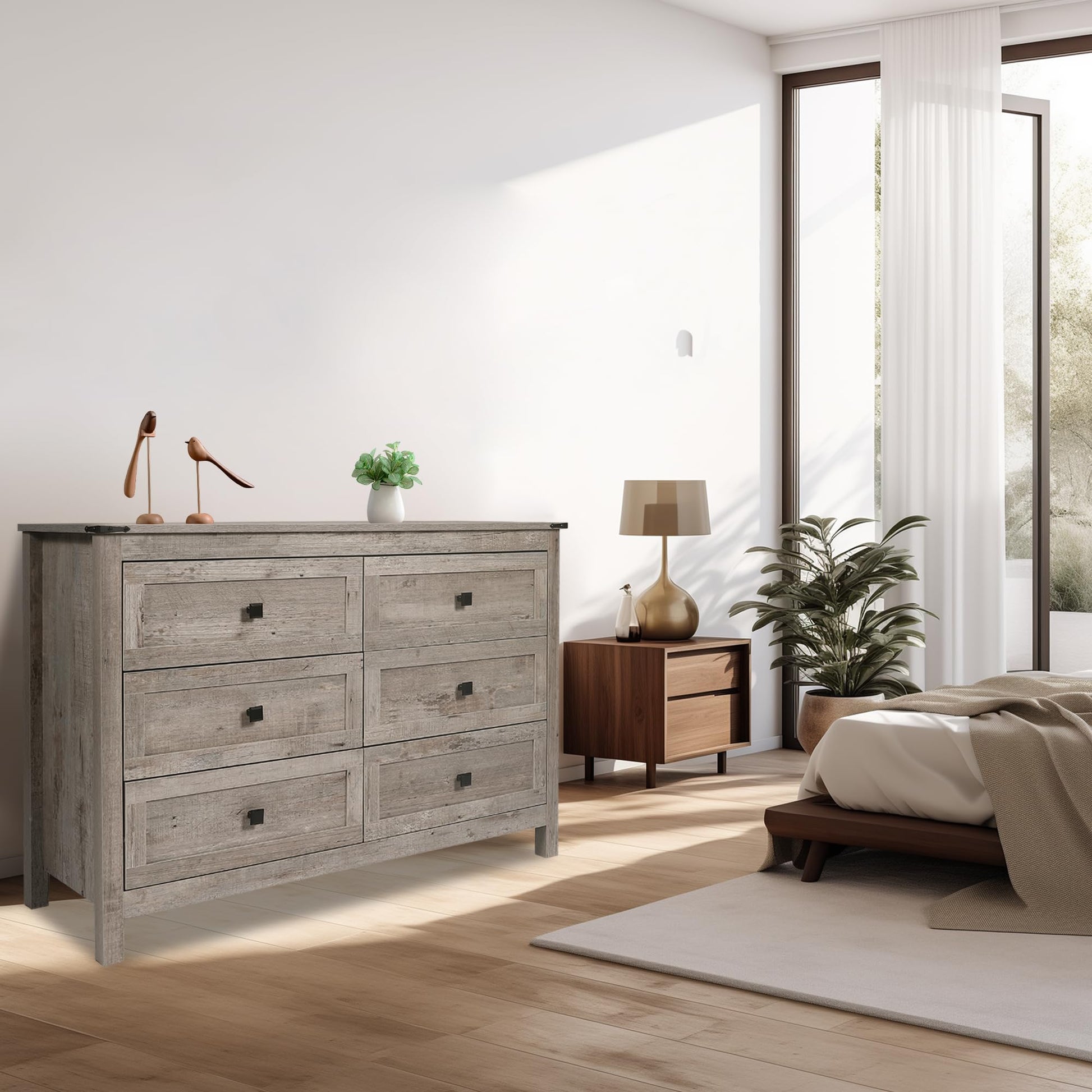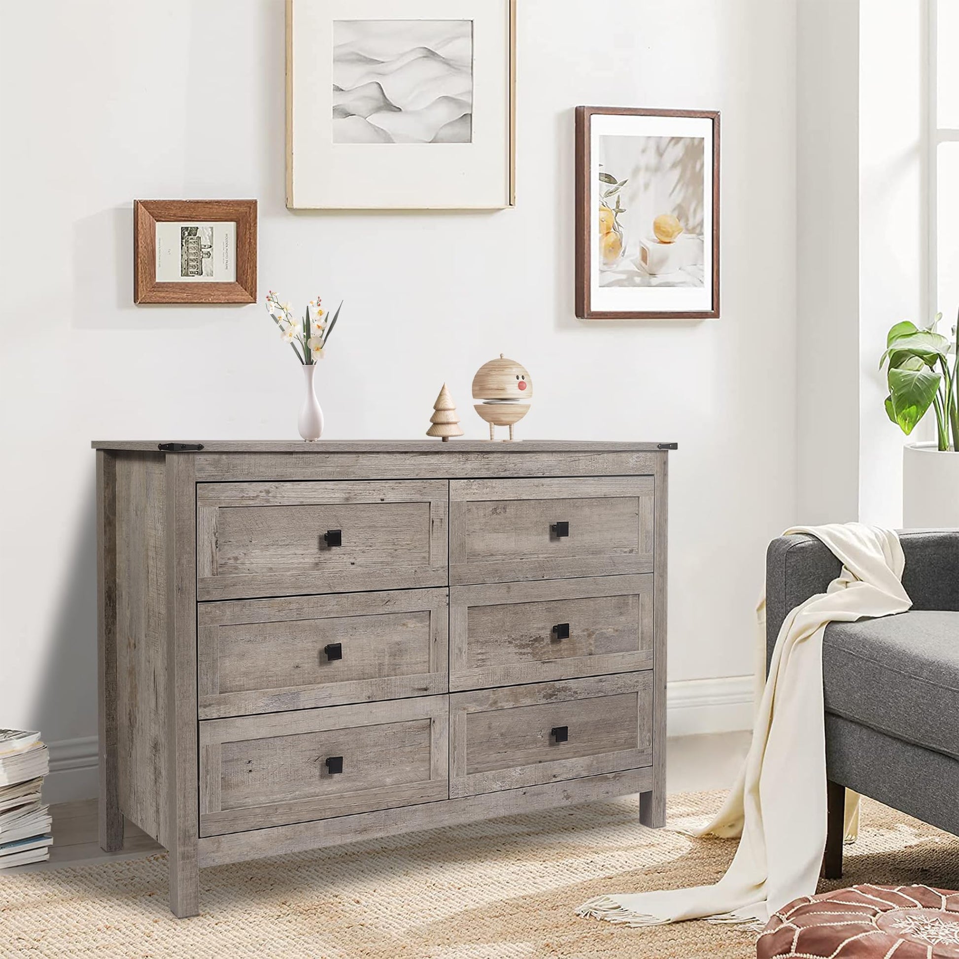 - With 6 spacious drawers, this rustic dresser offers versatile storage options suitable for any room in your home. Embrace the beauty of natural textures with our furniture, showcasing exquisite wood grains that enhance authenticity and rustic allure.