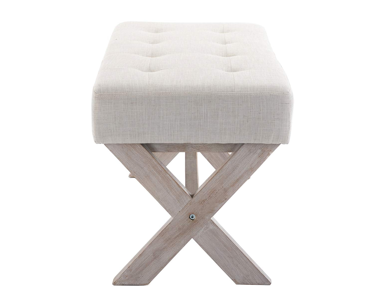 - The whole frame and x-legs are made of rubber wood which gives the entryway bench seat cushion the most support when you are changing shoes. This fabric bench could hold up to 330lbs