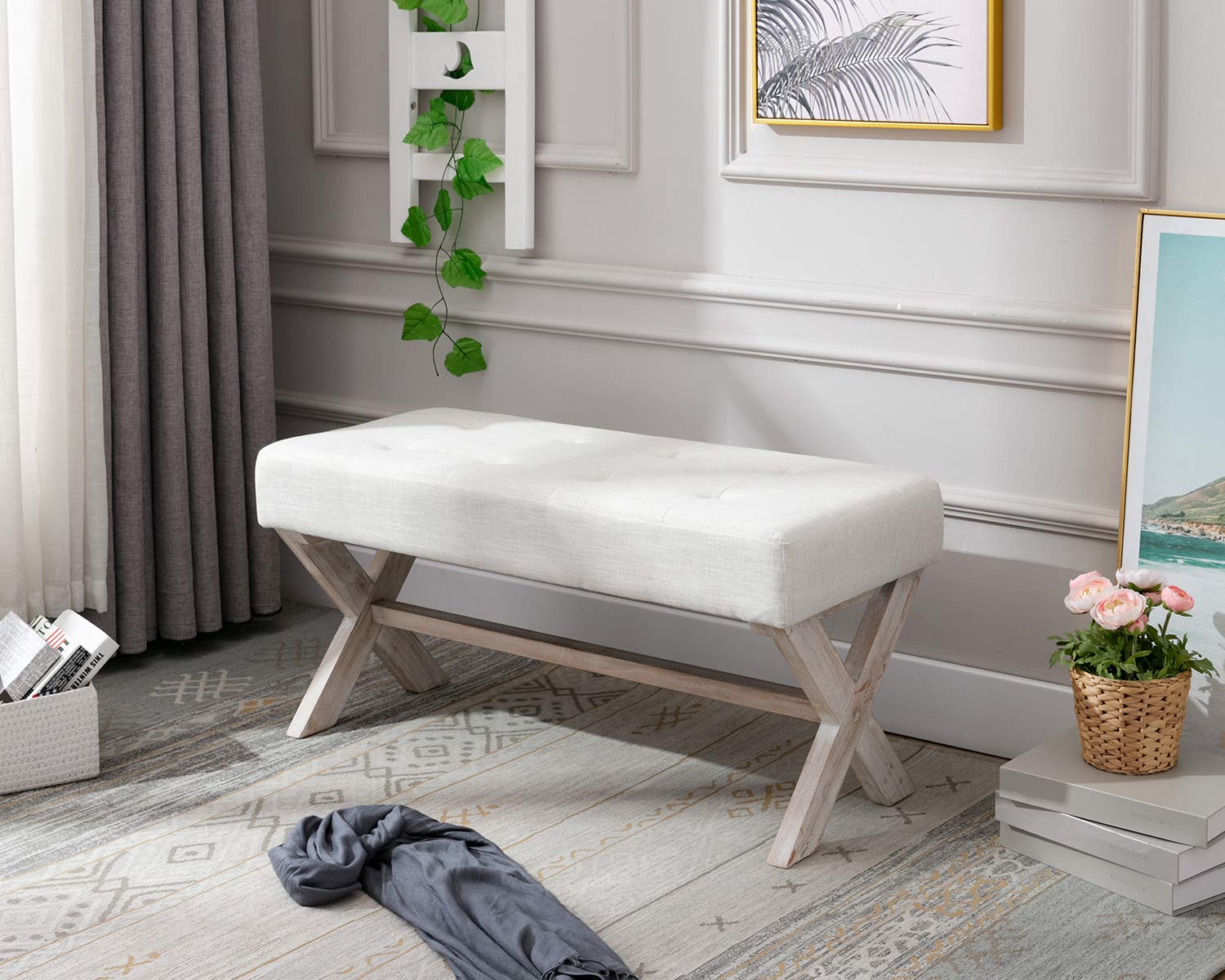 - The upholstered bedroom bench seat consists of durable Polyester surface and thick foam padding which make you feel soft and relaxed while sitting, button-tufted padded cushion offers a comfortable seat in any room