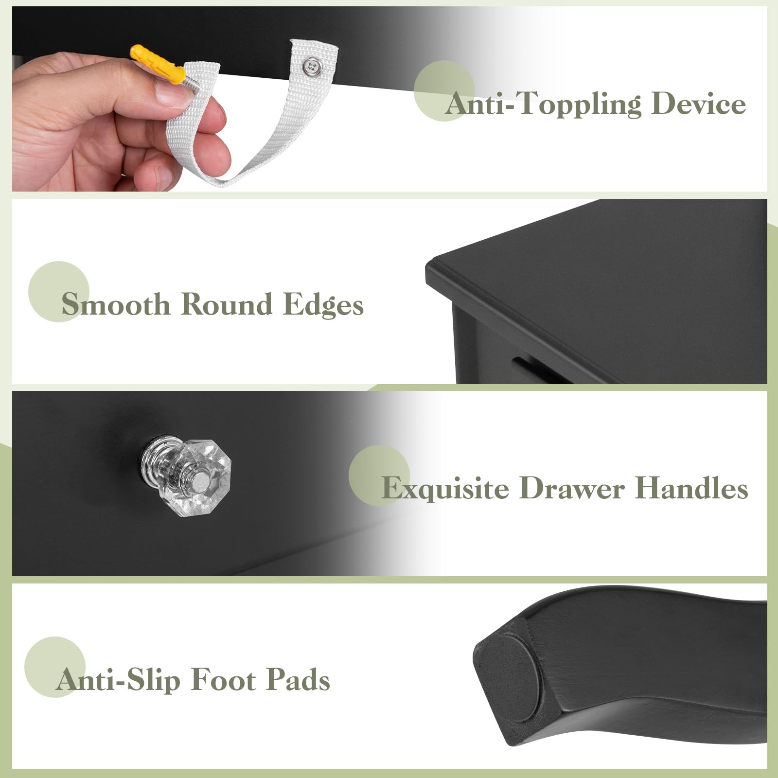 - [Durable Construction]: Constructed from high-quality materials, this makeup table and stool set is built for long-lasting durability and stability. The anti-tip device ensures added safety. Table dimensions: 31.5" x 15.5" x 54.5" (L x W x H). Stool dimensions: 14.5" x 11" x 17.5" (L x W x H).