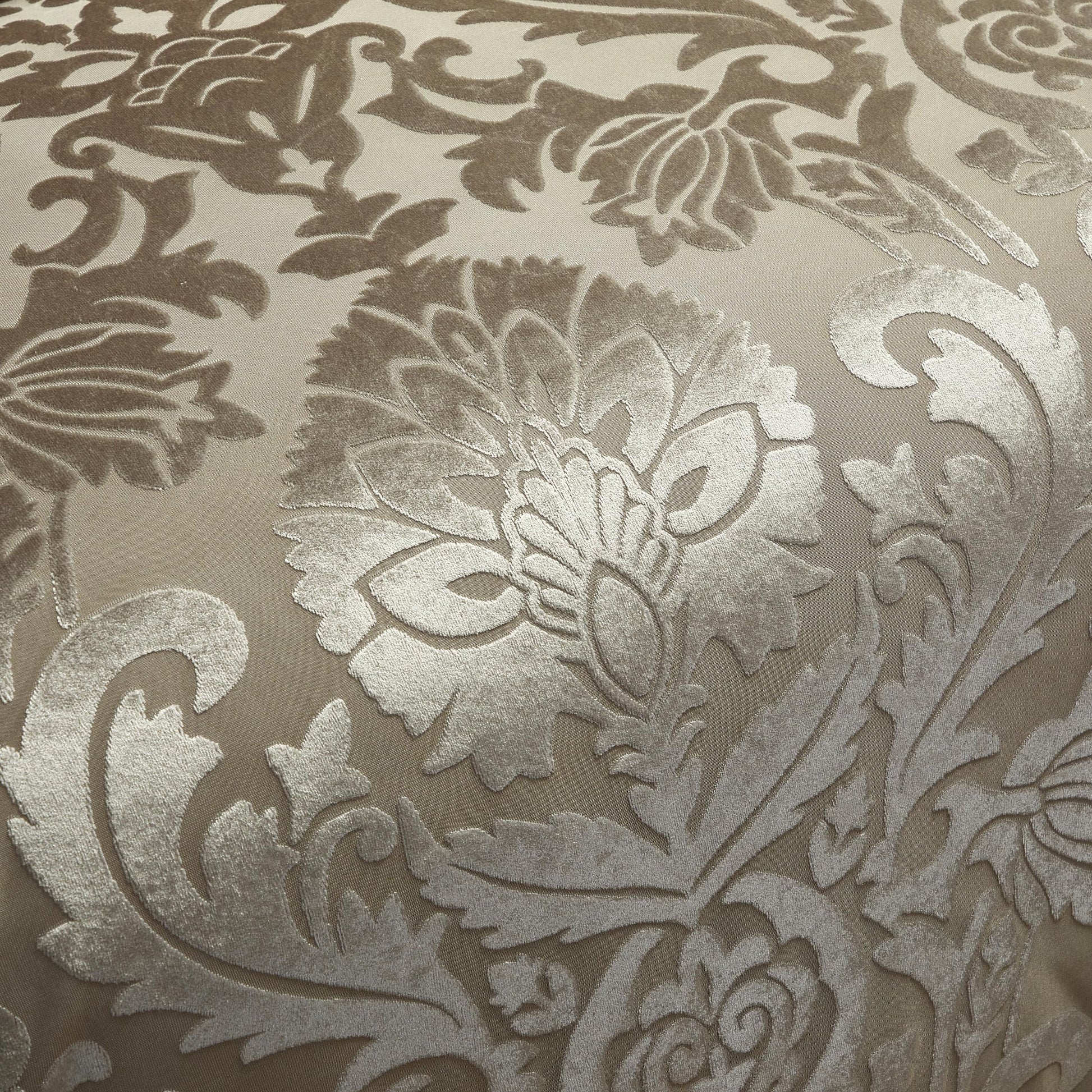 - JACQUARD ELEGANCE: Revel in the grandeur of the Chic Home Athena Queen Comforter Set, showcasing a taupe burnout velvet in jacquard damask, creating a luxurious interplay of sheen and texture for a majestic bedroom atmosphere.