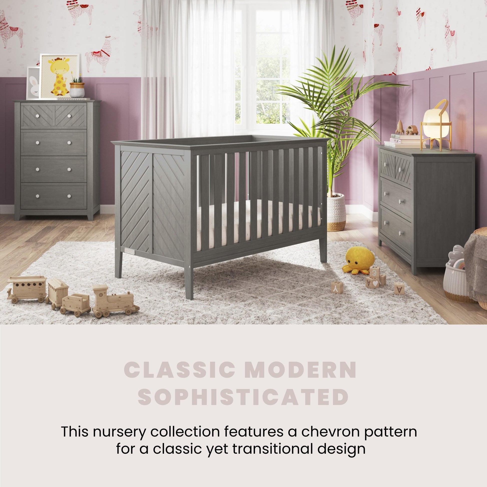 - Classic Traditional Baby Crib: Chevron patterned side panels creates angled geometry with a touch of style to this classic crib