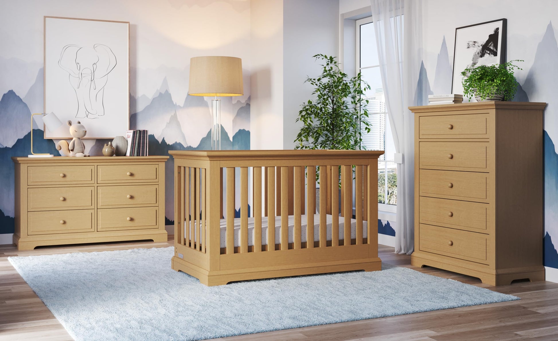 - Elegant Traditional Style: The Jordyn collection creates a one-of-a-kind feel for every nursery with crown molding and raised panels. Crafted with strong, sturdy pine wood and MDF with non-toxic, baby safe finishes that are designed to last.