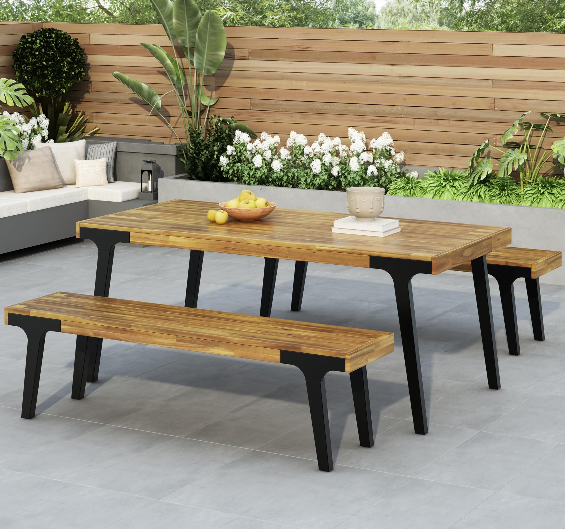 Knight Home 3 Piece Patio Dining Table,Acacia Wood Table Bench Dining Set