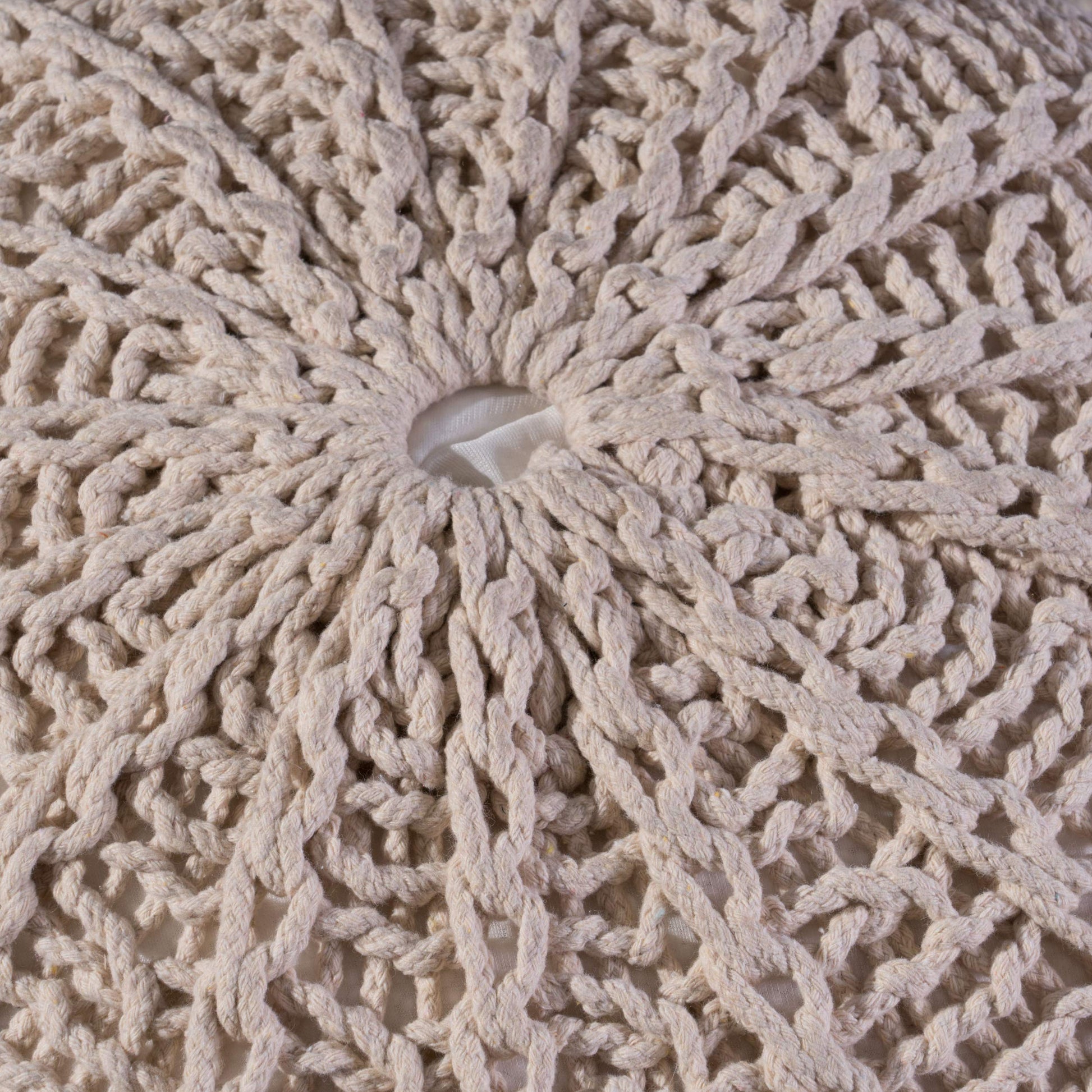 - Includes: One (1) Pouf. Material: Cotton thread. Composition: 100% cotton