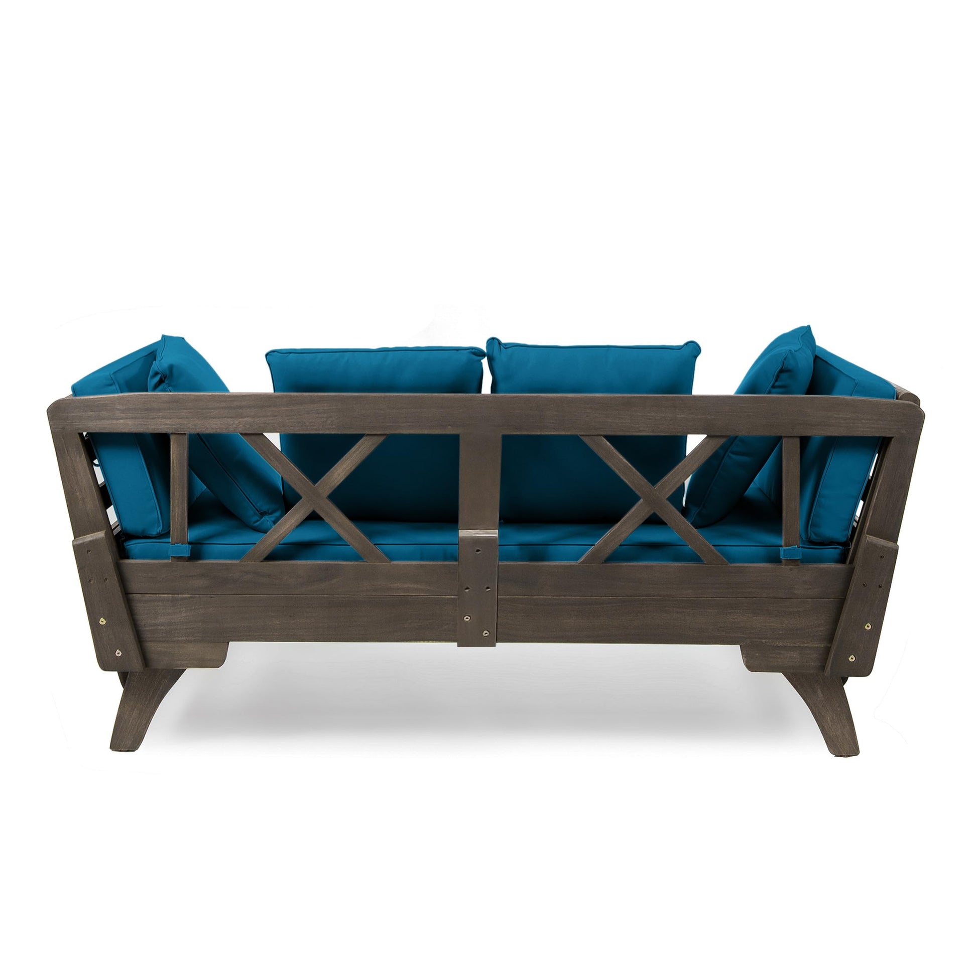 Aldrich Outdoor Acacia Wood Expandable Daybed with Water Resistant Cushions