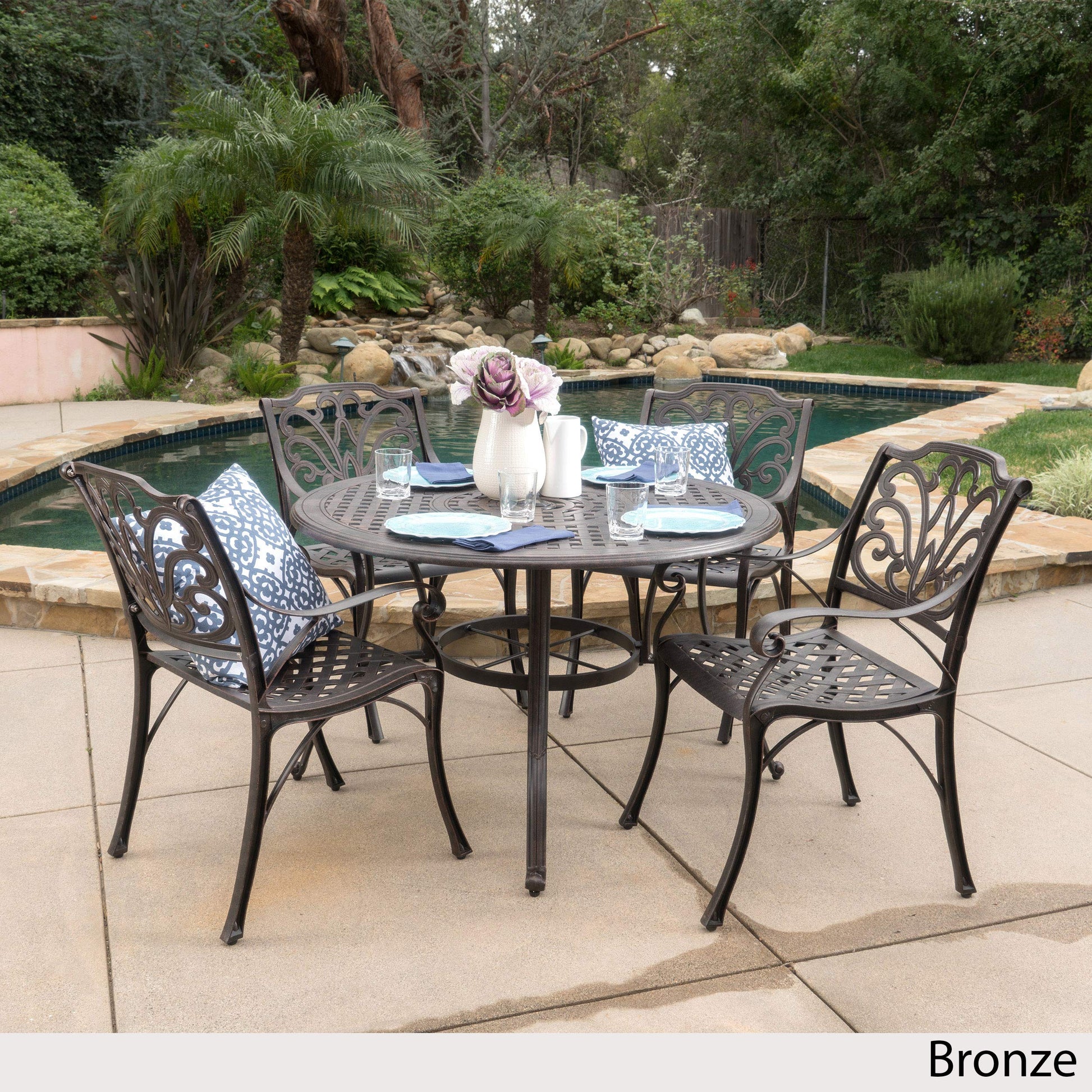 Alfresco Outdoor Cast Aluminum Circular Dining Set, 5-Pcs Set, Bronze