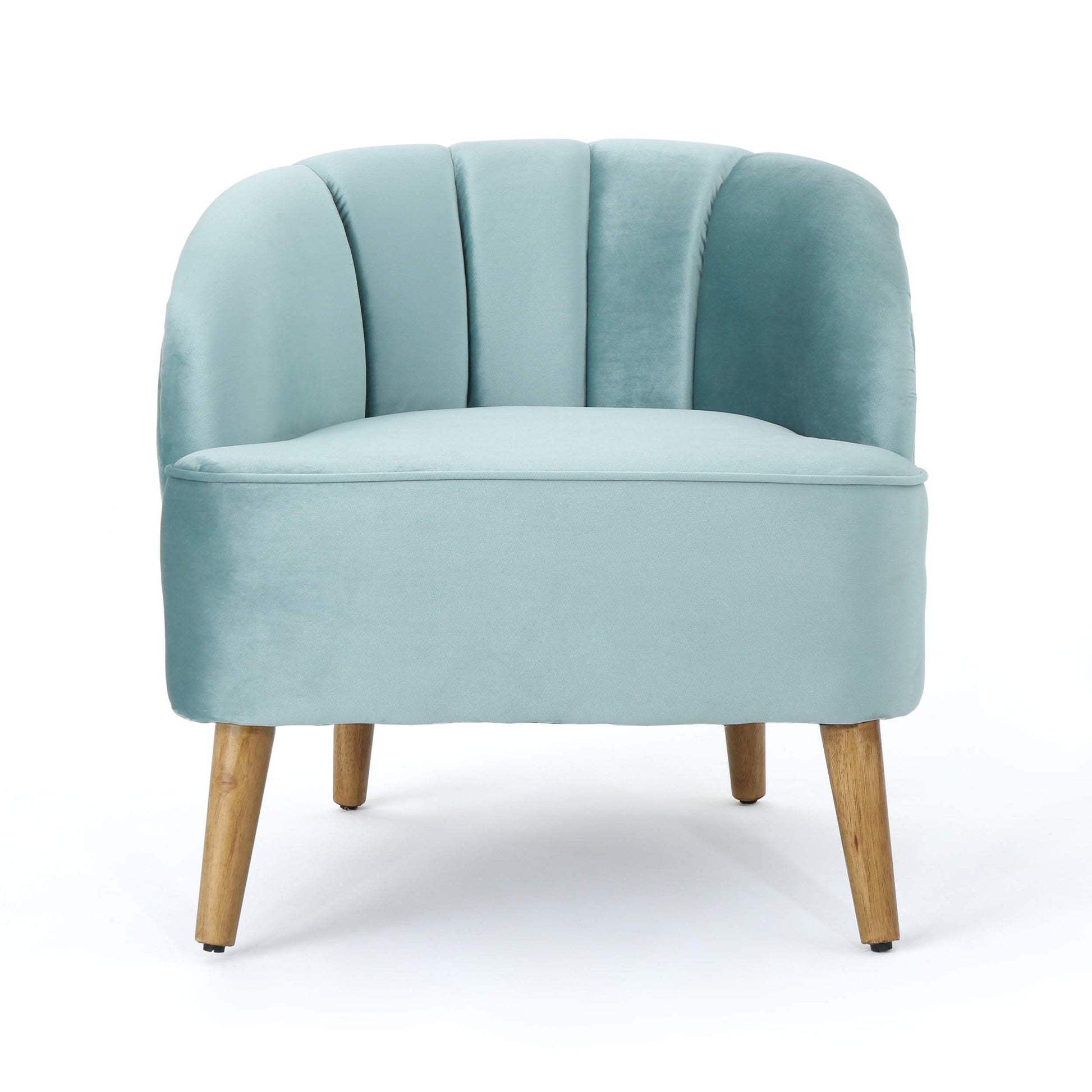 Amaia Modern Velvet Club Chair, Seafoam Blue / Walnut
