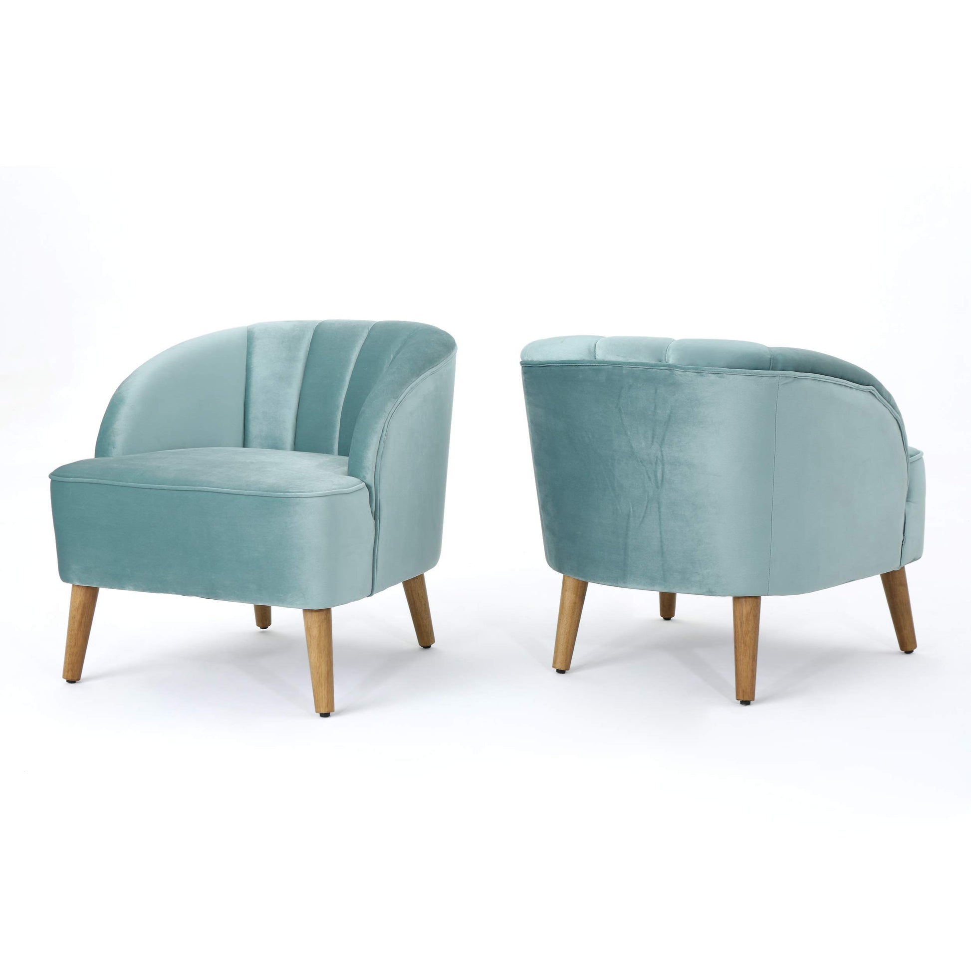 Amaia Modern Velvet Club Chairs, 2-Pcs Set, Seafoam Blue / Walnut