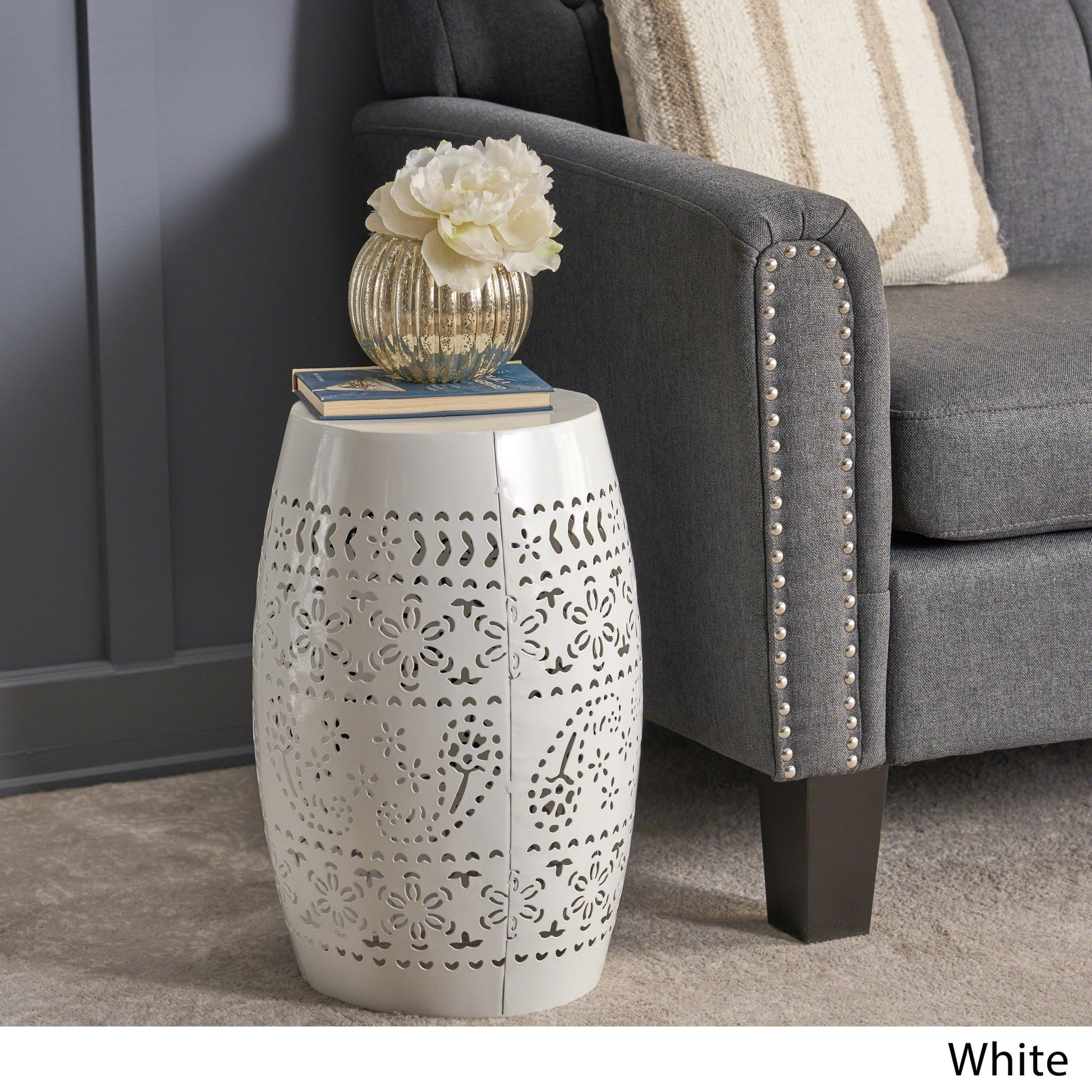 Apollos Indoor Lace Cut Iron Accent Table, White, 12.25D x 12.25W x 18H in