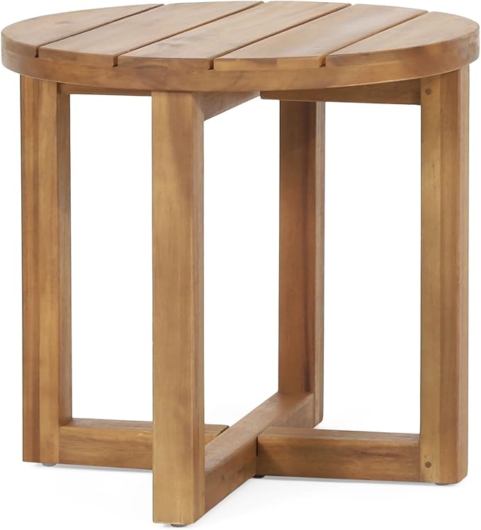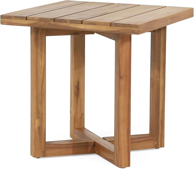 Gino Outdoor Acacia Wood Side Table, Natural Finish