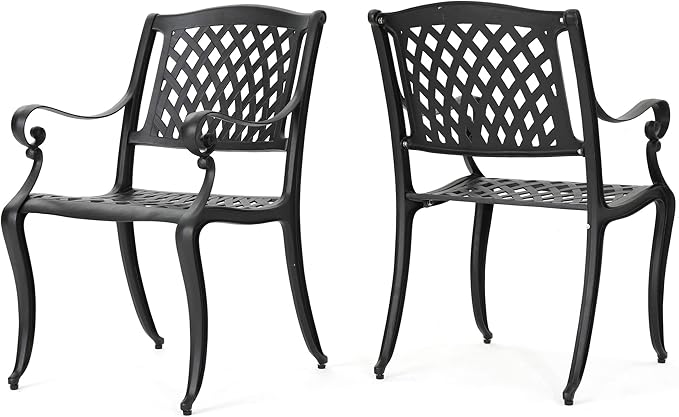 - Intricate antique design: We created our Marietta furniture set in a gorgeous Lattice design. The black and sand finish is neutral and looks great with other yard and patio decor.