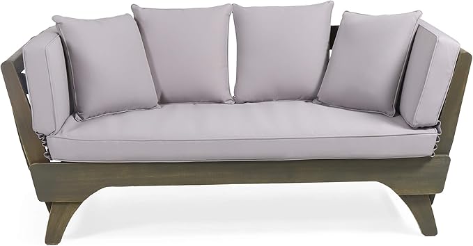Patrick Outdoor Acacia Wood Expandable Daybed with Water Resistant Cushions, Teak