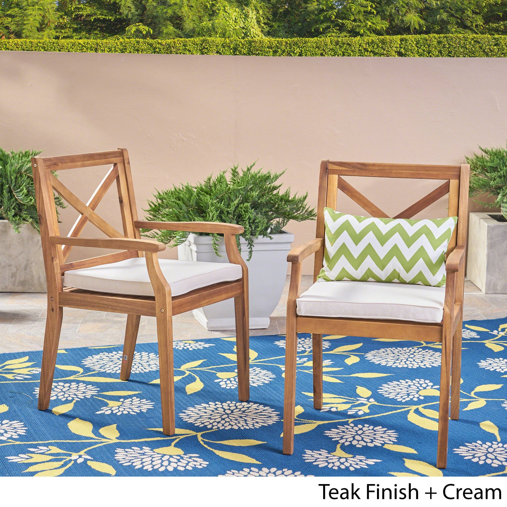 Peter Outdoor Acacia Wood Dining Chair Set of 2