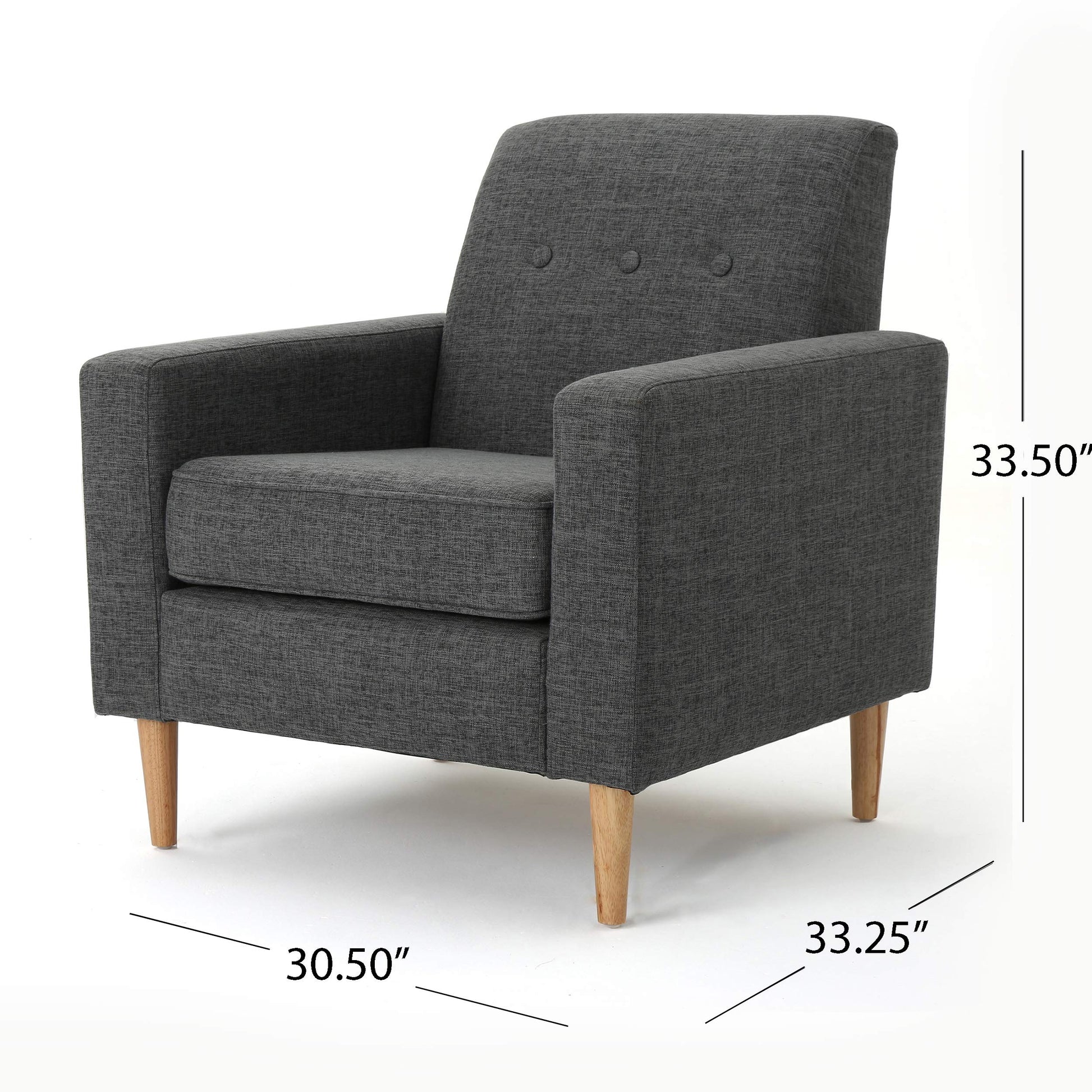 Sawyer Mid-Century Modern Tufted Fabric Club Chair, Grey / Natural