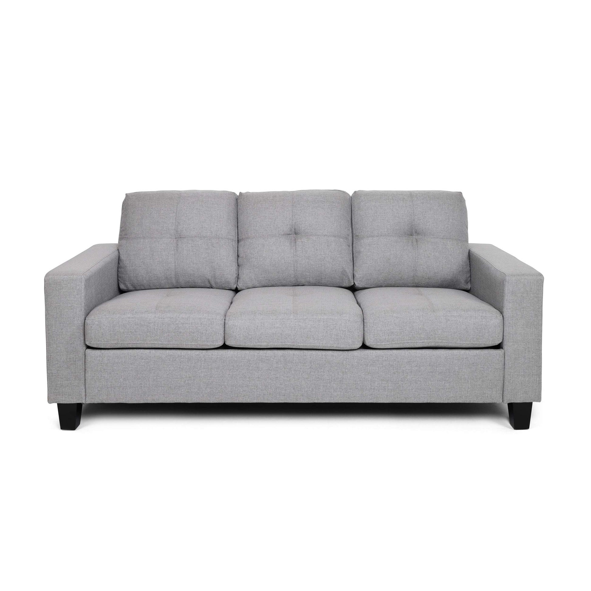 - With clean lines and tapered legs, this sofa features prominent contemporary designs. With sloped armrests and boxed structure, this sofa will blend seamlessly with your décor while providing ample seating space in any room