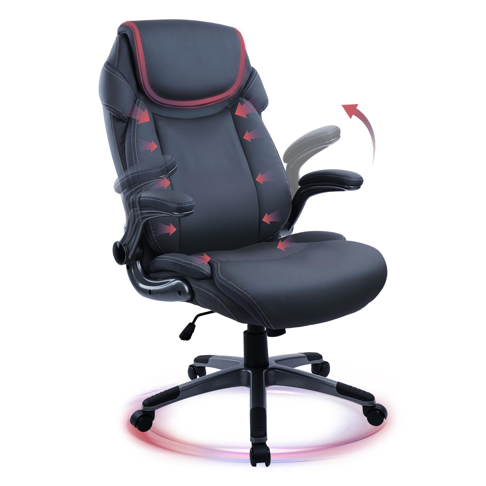 Ergonomic Office Chair Desk Chair with PU Leather High Back Flip-Up Arms Wheels,