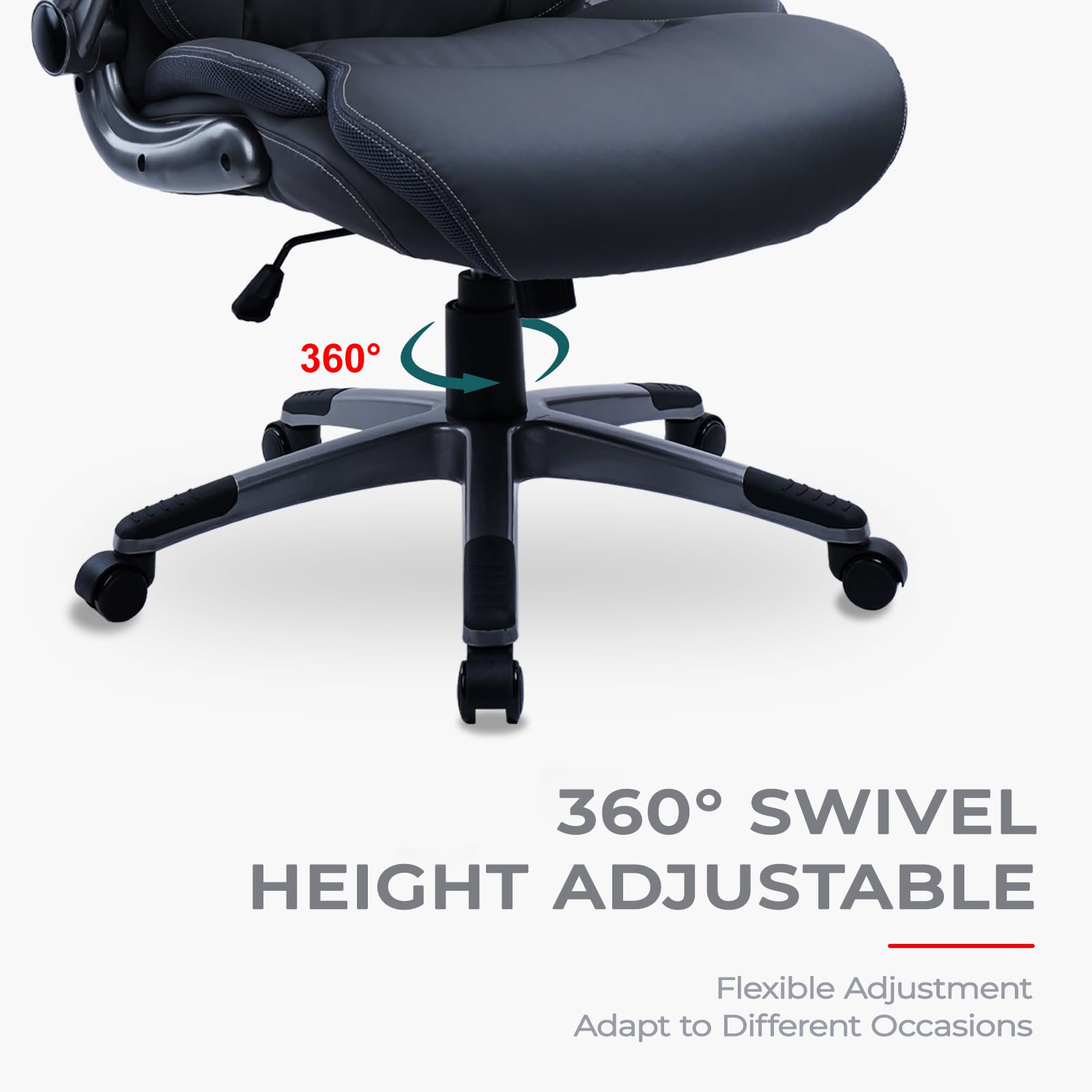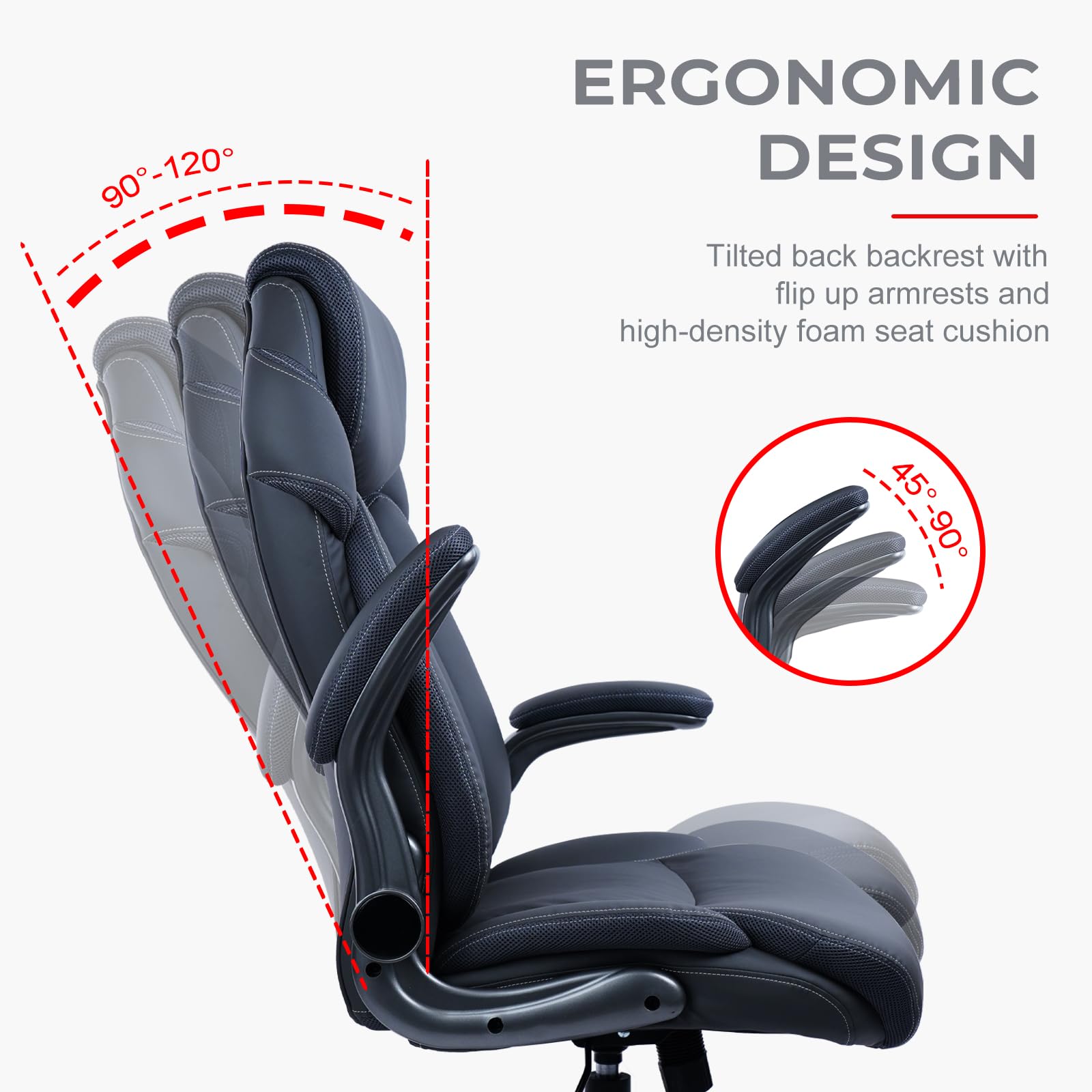 - ERGONOMIC DESIGN - The gray office chair is all covered with PU leather which offers softness and durability and comes with extra-wide padded seat. This leather office chair features plenty of thick padding to provide greater back support. The executive chair was made with you and your comfort in mind.