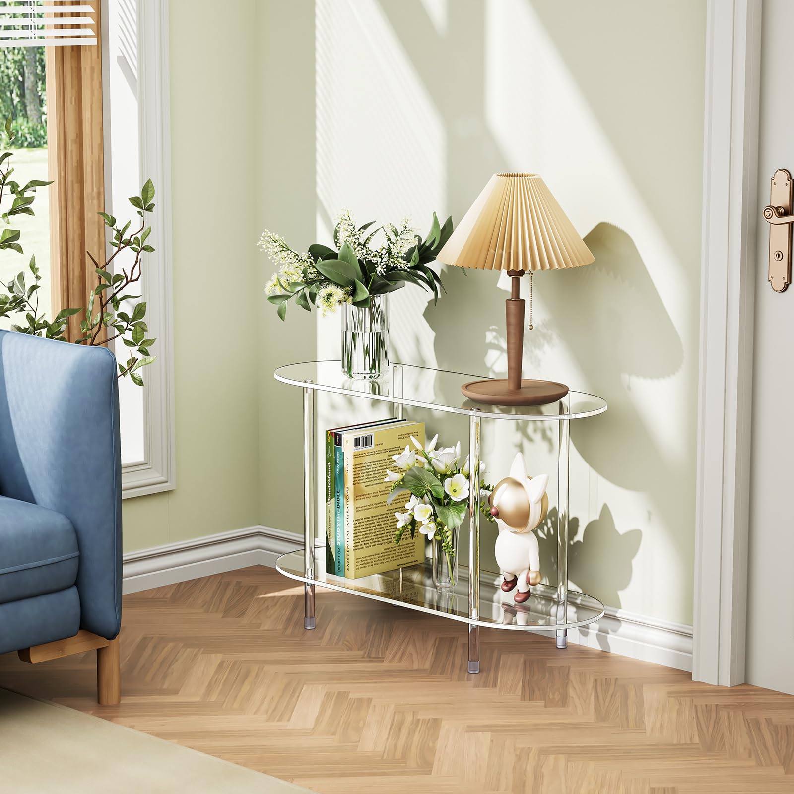 Clear Acrylic Console Table - 2 Tier Oval Storage Shelf