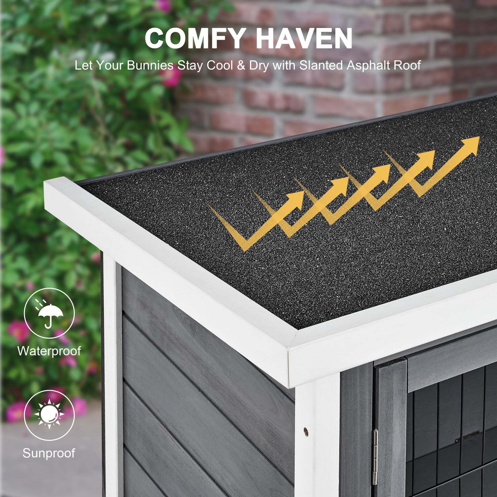 - Made from strong and resilient fir wood coated with nontoxic lacquer, this Snugens rabbit house with the weatherproof roof is protected from everyday wear and tear in any weather and suitable for either indoor or covered outdoor use