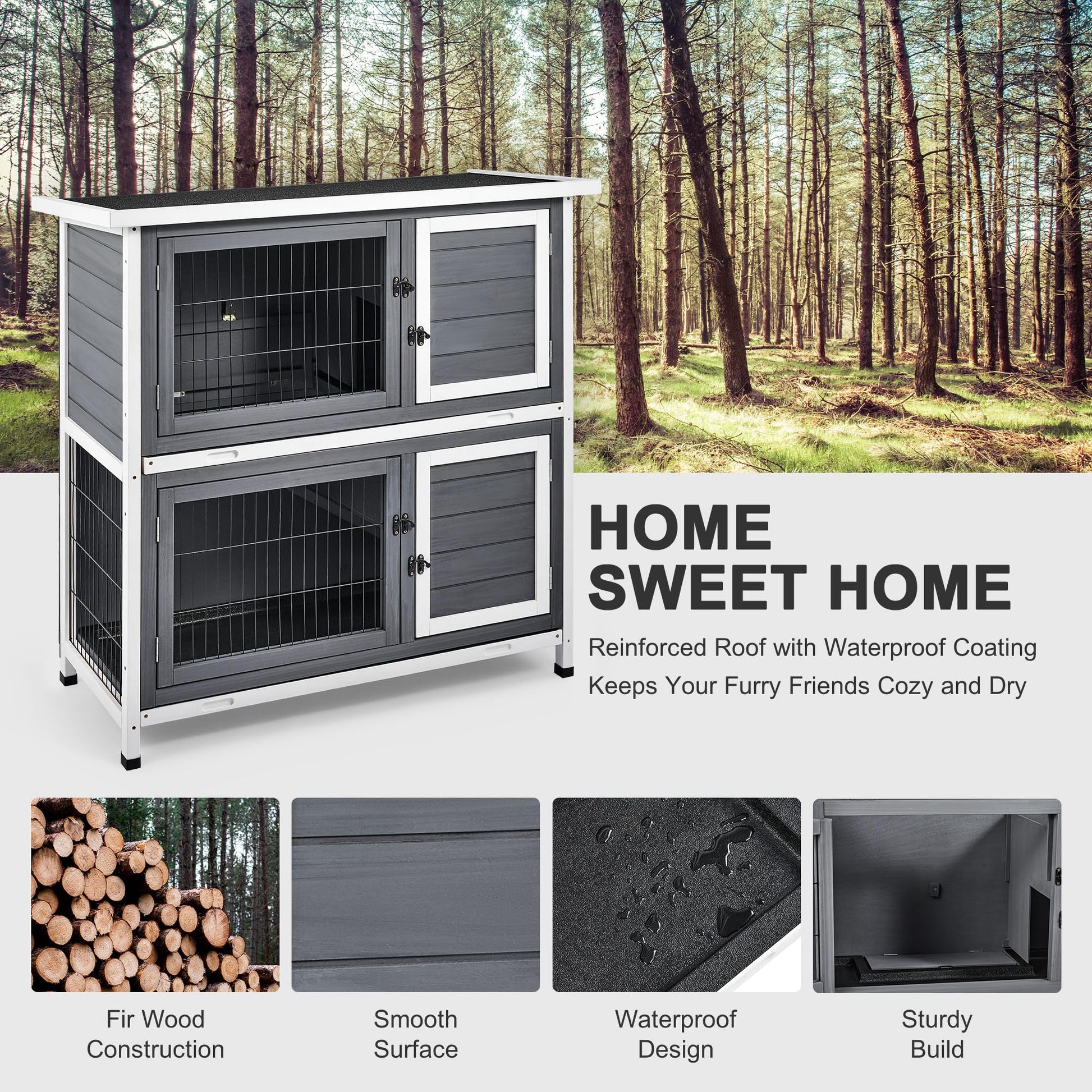 - The rabbit cage features 4 doors on each section and durable latch locks, allowing you to conveniently interact with your pets and keep them protected when you are not around